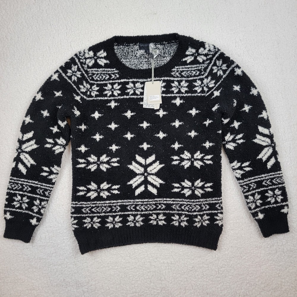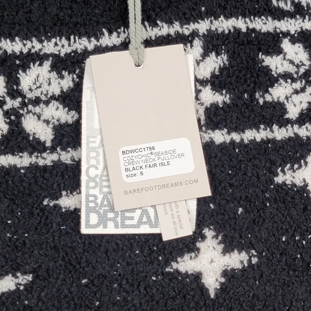 NWT Barefoot Dreams Sweater Cozy Chic Soft Christmas Black & White Fair Isle Snowflake Size S