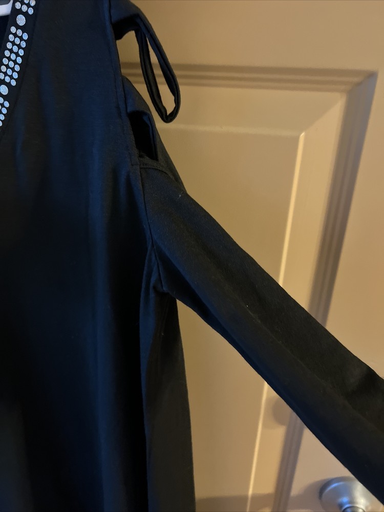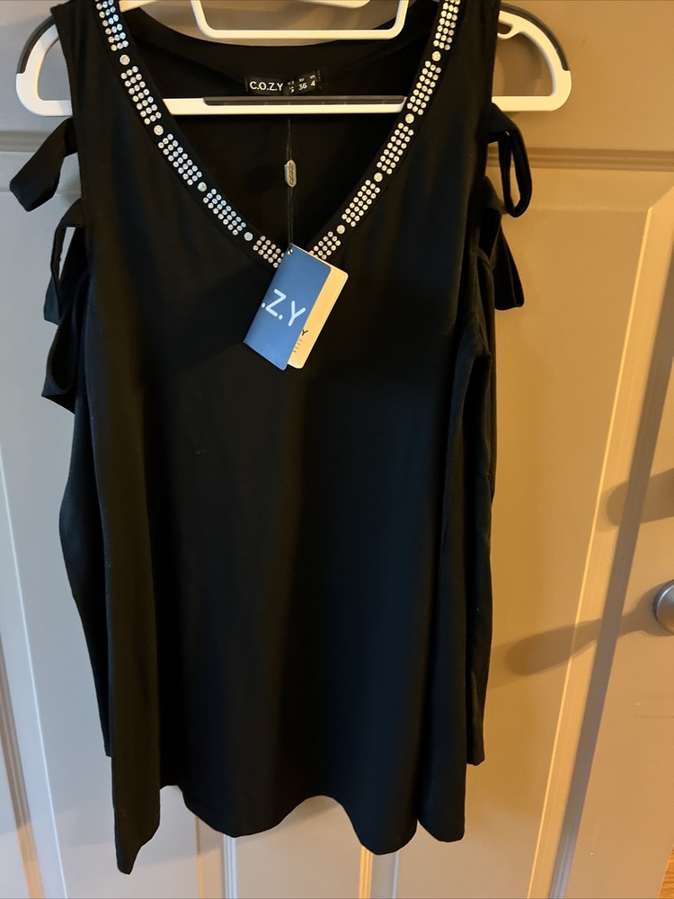 Elevate your wardrobe with this chic black blouse from COZY. Designed with a flattering V-neckline and shoulder cut-outs, this blouse is perfect for any occasion. The blouse is made from high-quality materials and is available in size small. The COZY brand is known for its stylish and comfortable clothing, making this blouse a must-have for any fashion-forward woman. This black blouse is perfect for any occasion, whether you're going out for a night on the town or dressing up for a formal event. The blouse is made from high-quality materials that are designed to last. The V-neckline and shoulder cut-outs add a touch of elegance to the blouse, making it perfect for any fashion-forward woman. So why wait? Add this chic black blouse to your wardrobe today!