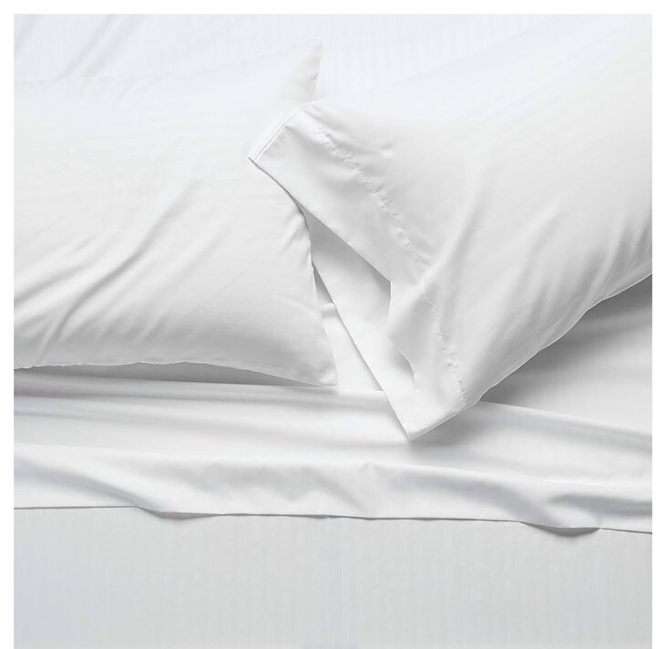 Luxurious soft and smooth Polyester top and bottom microfiber, soft! -Fresh comfort weave -Allows body to breathe -Durable -Includes: -1 Fitted Sheet -1 Flat Sheet -2 Pillowcases 100% Polyester Beautiful damask fabric embossed with a classic stripe pattern adds elevated style to any bedroom Machine washable and dryer safe; wrinkle and shrink resistant fabric stays looking new through multiple washes.