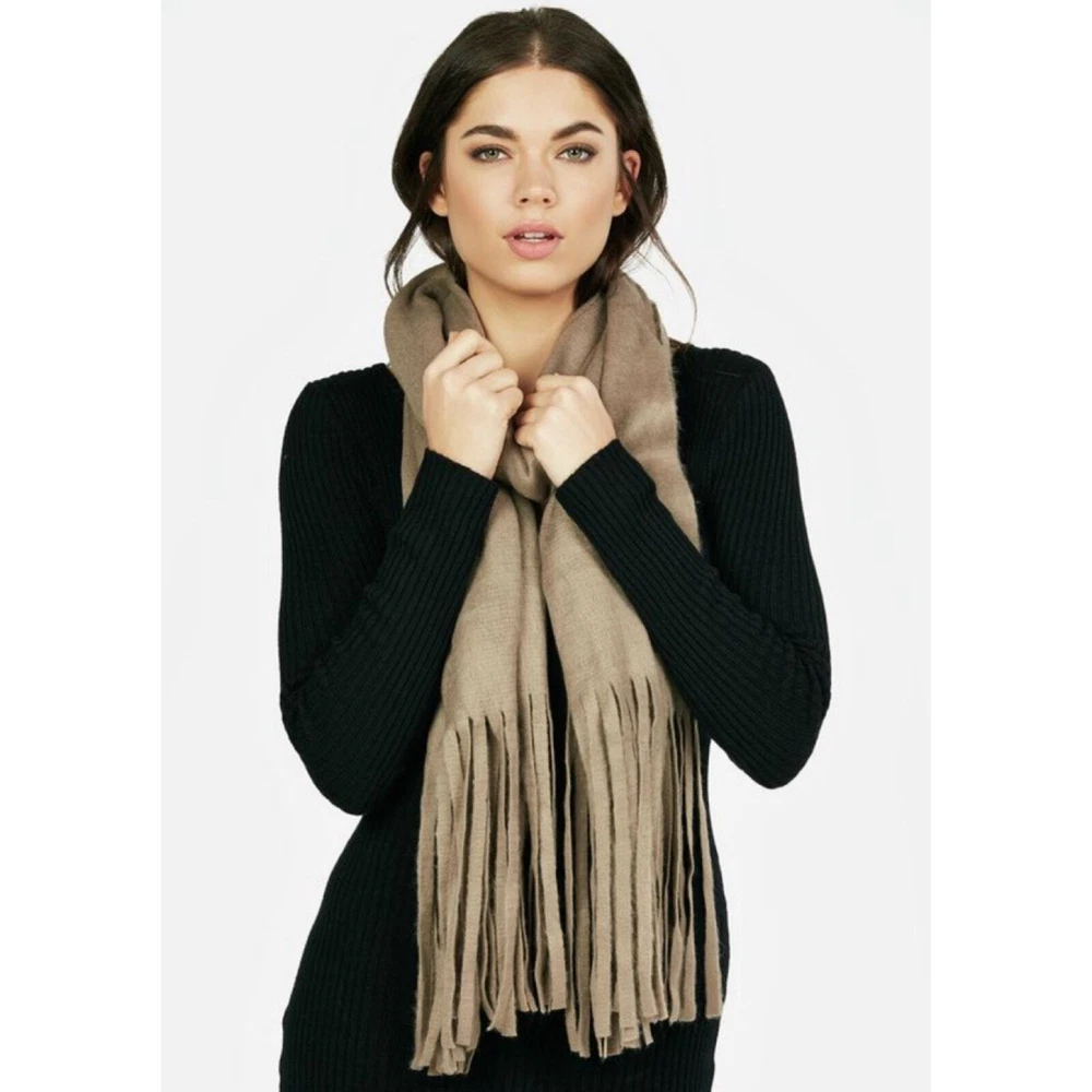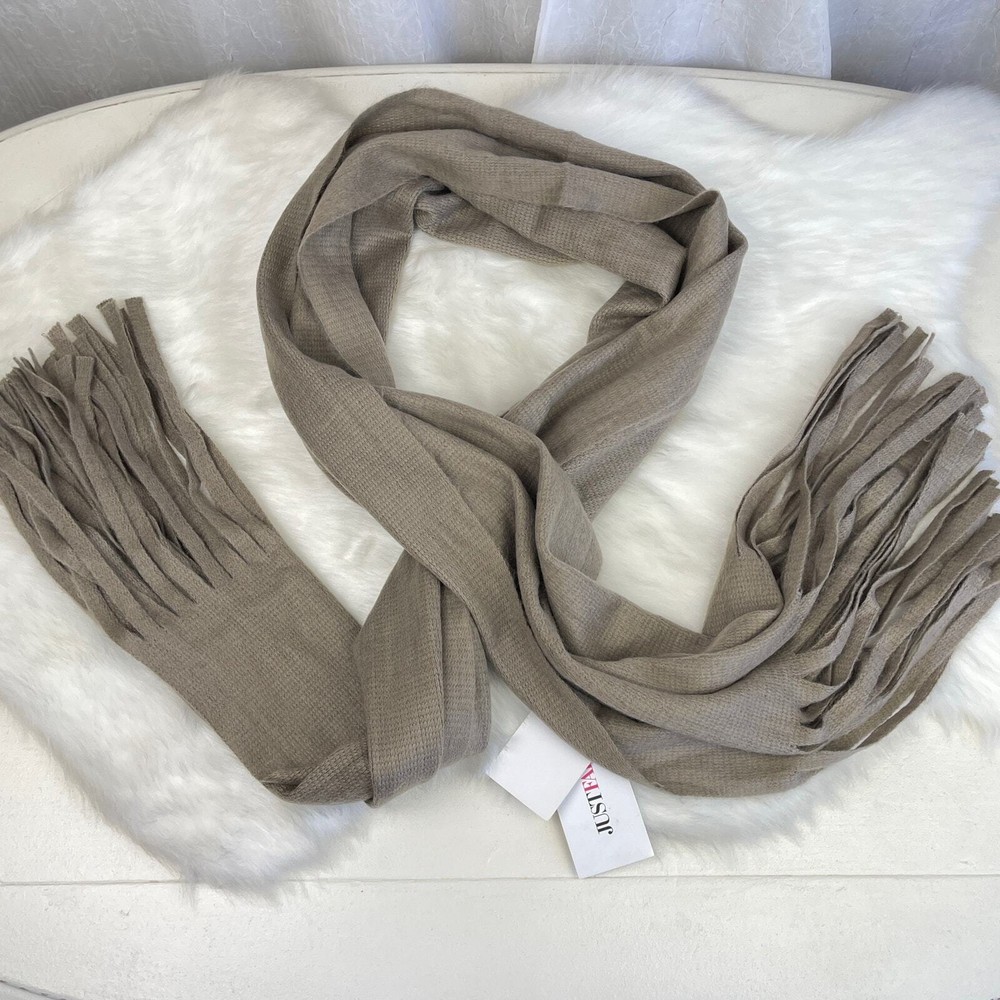 This scarf is gorgeous and unbelievably soft—perfect for chilly days! The lightweight knit gives it amazing drape, and the extra-long length lets you style it in so many ways. The taupe color is neutral enough to go with everything, and the fringe adds a fun boho touch. So cozy yet effortlessly chic—definitely a must-have for fall and winter! Shipping was fast, and the scarf arrived brand new with tags still attached. A fantastic deal for such a high-quality piece!