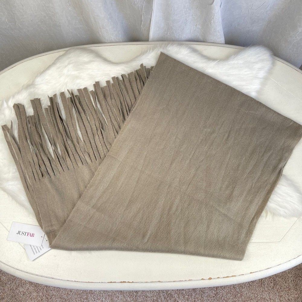 ✨PLEASE READ DESCRIPTION & VIEW PHOTOS BEFORE PURCHASING :) THANK YOU!✨ Chic & cozy knit fringe scarf from Just Fab! Size: One Size 100% Acrylic Length: approx. 85 in (including fringe) Width: 18.5 in BRAND NEW!! Still has tags attached! Beautiful neutral light brown / taupe shade Thinner knit fabric, but LOTS of it for a super cozy scarf - style in many ways! Soft & comfy - has a subtle fuzziness to fabric PERFECT scarf to look chic & stay warm this Fall & Winter! SHIPPING I understand how frustrating high shipping prices are. I try to keep shipping as low as possible. It is calculated automatically by USPS based on your location and the exact weight of the package. PACKAGE NOT RECEIVED? Never received your package? Unfortunately, once it is dropped off at the post office, I am unable to provide any more information other than what the tracking # provides. Please contact your local USPS / post office and they may be able to help locate the missing package. If the package is marked "Delivered" unfortunately I cannot offer any kind of refund. DISCOUNT ON MULTIPLE ITEMS! Interested in more than one listing? Send me a message! I will adjust the prices for a CUSTOM DISCOUNT (or provide a refund adjustable after payment - agreement on discount must be discussed first). COMBINED SHIPPING DISCOUNT FOR MULTIPLE ITEMS (when possible)! In order to receive discount on multiple items (above) all items must be purchased at the same time. Shipping cannot be adjusted during purchase, but I will ISSUE A REFUND for the savings on shipping, if applicable. (Combined shipping discount depends on the type of items purchased and the total weight of the package. Occasionally, a shipping discount cannot be offered.) RETURN POLICY: Returns NOT Accepted Please, please, please thoroughly read the description and item details, including measurements. If you have any questions, please send a message before purchasing and I will be happy to help! **I often re-use packing materials to reduce waste. They are never dirty! But may not be the “prettiest” boxes or bags. JustFab Just Fab BNWT NWT Brand New With Tags Deadstock Long Scarf Scarves Scarfs Fringe Spring Fall Autumn Winter Style Fashion Cozy Cottagecore Cabincore Cabin Core Coastal Cottage Grandma Designer Minimalist Minimalism Neutral Basic Basics Preppy Farmhouse Chic Light Academia Aesthetic