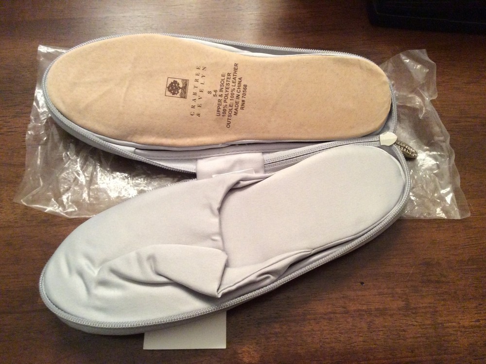 NWT! Crabtree & Evelyn Womens satin Travel slippers Dark Grey Heather Size Small (US 5-6) see pics. Comes from non-smoking no pets home. (0252T)...