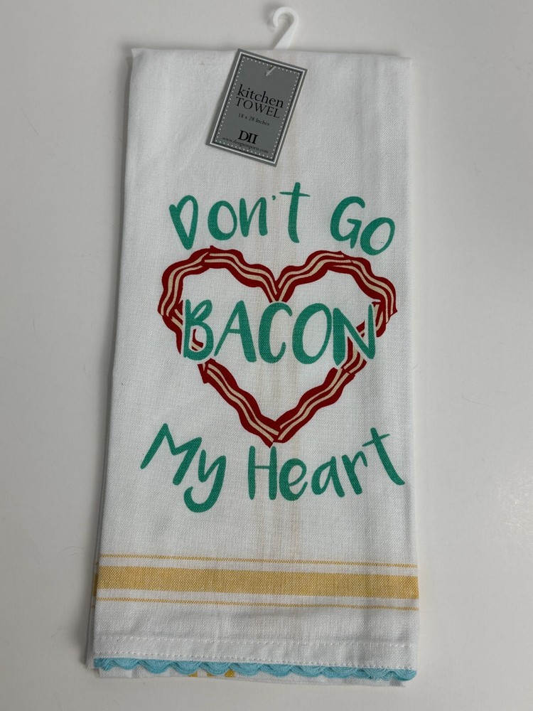NWT DII Design Imports Don't Go Bacon My Heart Kitchen Towel Set Don't Go Bacon My Heart And I Couldn't If I Fried Kitchen Towel Set Of 2 * Design Imports * Brand New With Tags WHAT'S INCLUDED Two 18" X 28" Kitchen Towels PRODUCT CONSTRUCTION & CARE 100% Cotton Care Instructions: Machine wash cold separately | Gentle cycle | Tumble dry low | Low iron All items come from a smoke free home. Feel free to ask any questions you may have. Happy shopping! See my other listings for more great items! Payment is expected within 7 days, unless other arrangements have been made. Items will be shipped within 48 business hours of receiving payment your choice of USPS Ground Advantage for 5.95 or Priority Mail for 8.95. Other Items Feedback eBay Store Showcase by Seller SourceBook txzj pxzj15537 txzj-11 txzj97