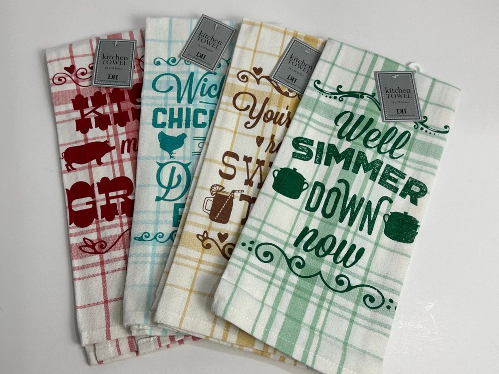 NWT DII Design Imports Southern Sass Kitchen Dish Towel Set of 4 Southern Sass Kitchen Towel Set Of 4 * DII Design Imports * Brand New With Tags WHAT'S INCLUDED Four 18" X 28" Kitchen Towels - One Of Each Design (As Shown) PRODUCT CONSTRUCTION & CARE 100% Cotton Care Instructions: Machine wash cold separately | Gentle cycle | Tumble dry low | Low iron All items come from a smoke free home. Feel free to ask any questions you may have. Happy shopping! See my other listings for more great items! Payment is expected within 7 days, unless other arrangements have been made. Items will be shipped within 48 business hours of receiving payment your choice of USPS Ground Advantage for 5.95 or Priority Mail for 8.95. Other Items Feedback eBay Store txzj pxzj376 txzj-11 txzj18 txzj48 txzj115