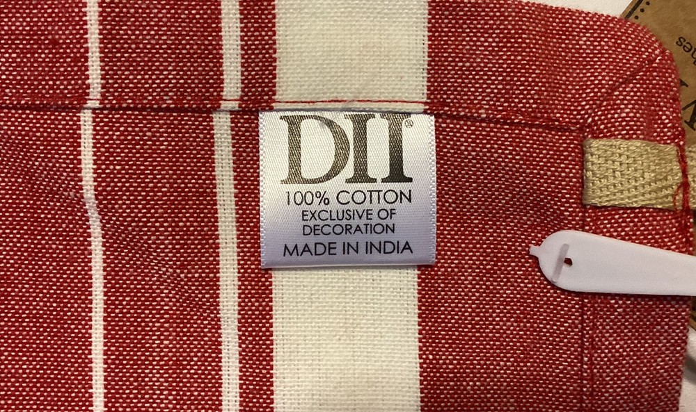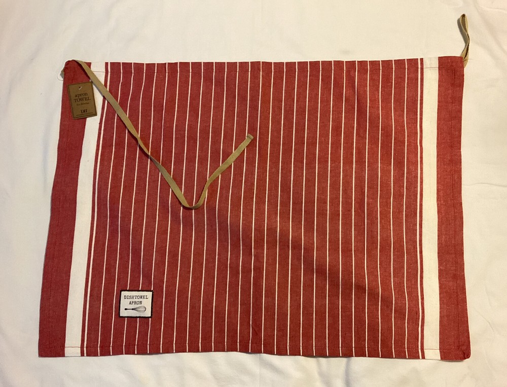 Add a pop of color to your kitchen with this new Design Imports dish towel apron. The red and white striped pattern is perfect for a multipurpose occasion, and the 100% cotton material ensures durability and easy cleaning. With dimensions of 28 in by 20 in, this apron fits comfortably and securely. Made in India, this apron is a must-have for any kitchen. Please view pictures for additional information and actual condition. If you have any questions, please ask. Thanks for looking. I try to provide enough pictures so that you can judge what the item's condition, grade, or worth.