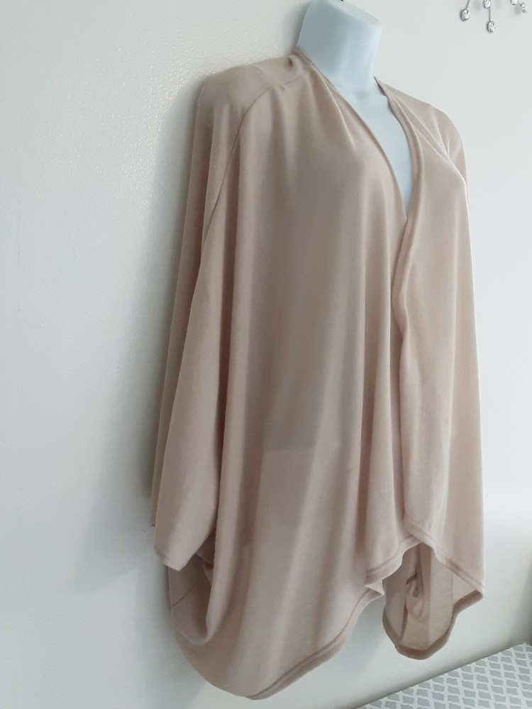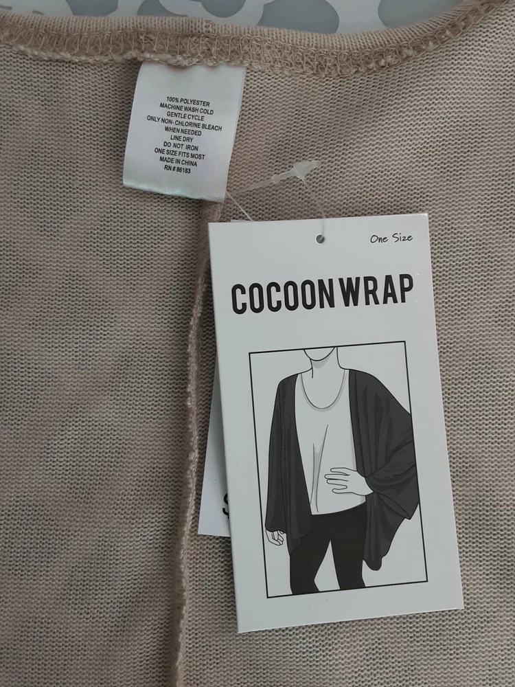 Cocoon Wrap Womens One Size Beige Open Front. Condition is New with tags. Shipped with USPS First Class Package. Very comfortable and lightweight Cocoon Wrap. At the back of shoulder height it has a pink a little dot almost not visible. Thank you for looking!!