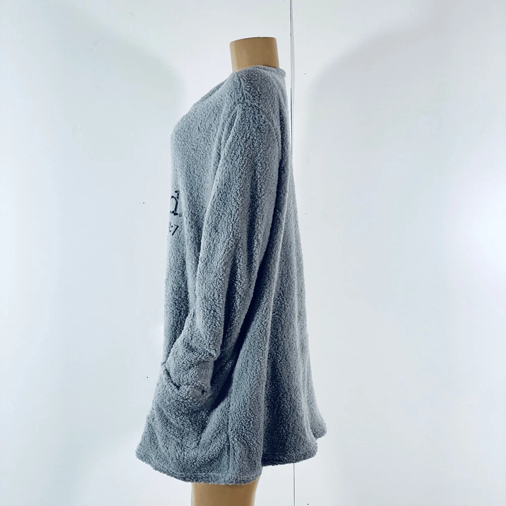 New with Tags Yes, I'm cold ME 24:7 Grey with black letters Sherpa Like Fuzzy Teddy Pullover Sweatshirt Graphic Top. Gorgeous!!! Soft!!! Warm!!! Cozy!!! Lightweight!! Long!!! Grey Sherpa Like Fuzzy Teddy Pullover Sweatshirt Graphic Top. (Some pictures, taken from same style, with graphic print. That I have in another listing) You won’t be able to believe how soft & cozy it is!!!! Size: XXL / 2X Plus Size Measurements: on Pictures It comes in original bag. This is a gorgeous gift for yourself or for somebody Special. Also a Great Gift for a Birthday, Anniversary Valentine’s day, Mother’s day or Christmas!! Packaged with Care & Love!!! Rare!!! Unique!!!! Beautiful!!! Fun!!! Soft!!!! & Super Cozy!!! A little piece of happiness!!! Bundle to save!!! 💝