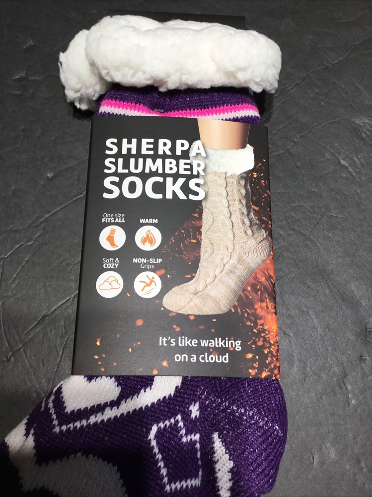 Keep your feet warm and cozy with these Heat Trendz Sherpa Slumber Socks. The socks come in a beautiful purple hearts color that is perfect for the winter, fall, and spring seasons. These non-slip bed/slipper socks are made of polyester and acrylic materials, making them comfortable to wear. The socks are suitable for women and men of all sizes, as they come in a one-size-fits-all style. They are perfect for casual occasions and leisure activities such as sleeping or lounging around the house. These socks make an excellent gift for Christmas, winter, holiday, or any other snuggly occasion. Purchase now and experience the warmth and comfort of these socks. Unisex