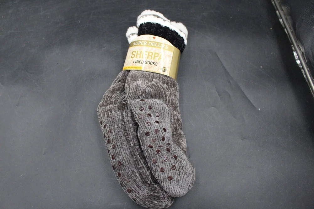 Stay cozy and warm with these Heat Trendz Sherpa Socks. Perfect for any winter occasion, these mid-calf socks feature a full toe style and non-slip grip for added comfort. Made of a soft and warm polyester and acrylic blend, these socks are machine washable for easy care. With a simple theme pattern, these socks are a great addition to any casual outfit. They come in one size that fits all, making them a versatile option for any wardrobe. Whether you're running errands or lounging at home, these bed/slipper socks are a must-have for any woman's wardrobe.