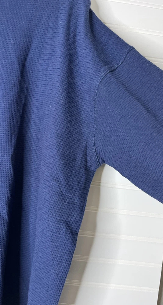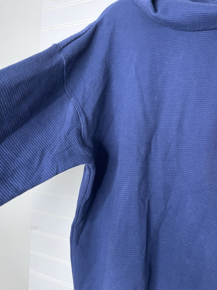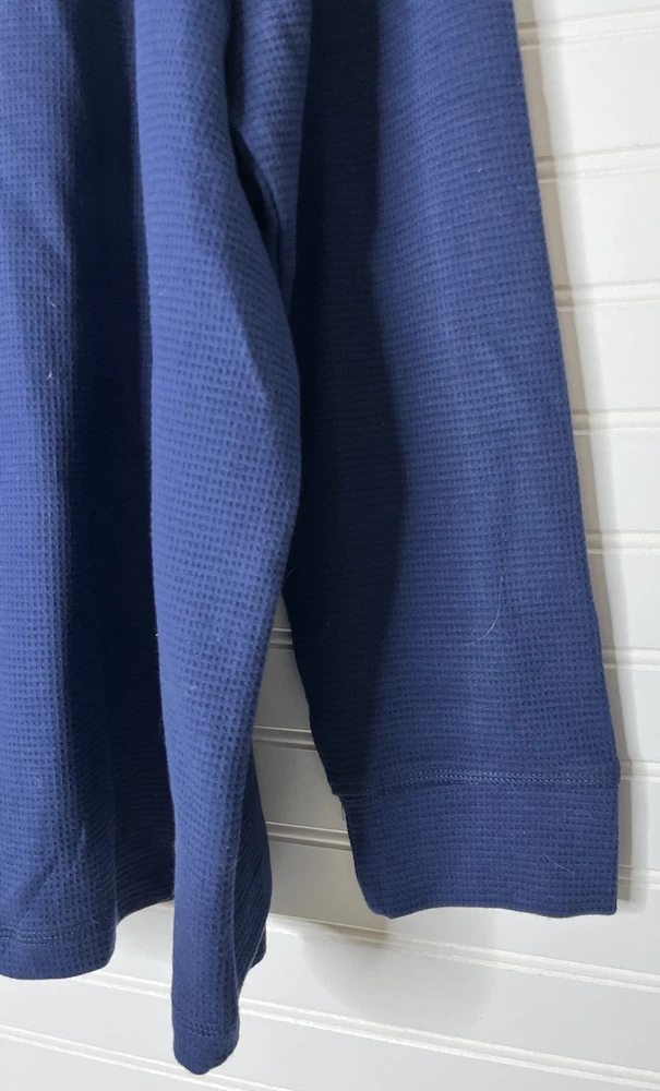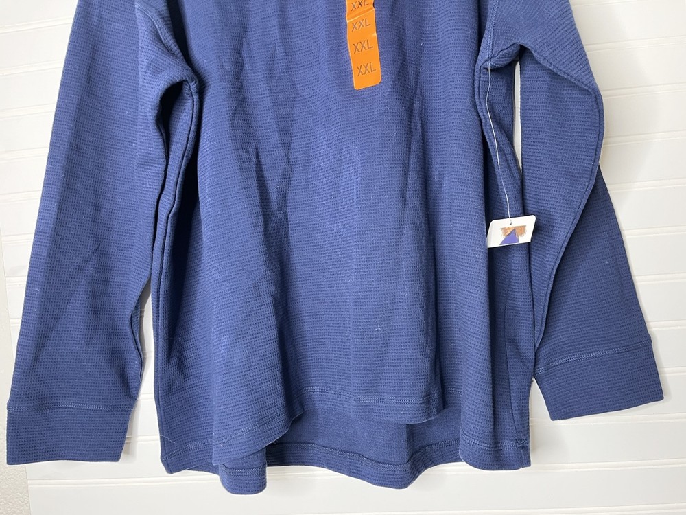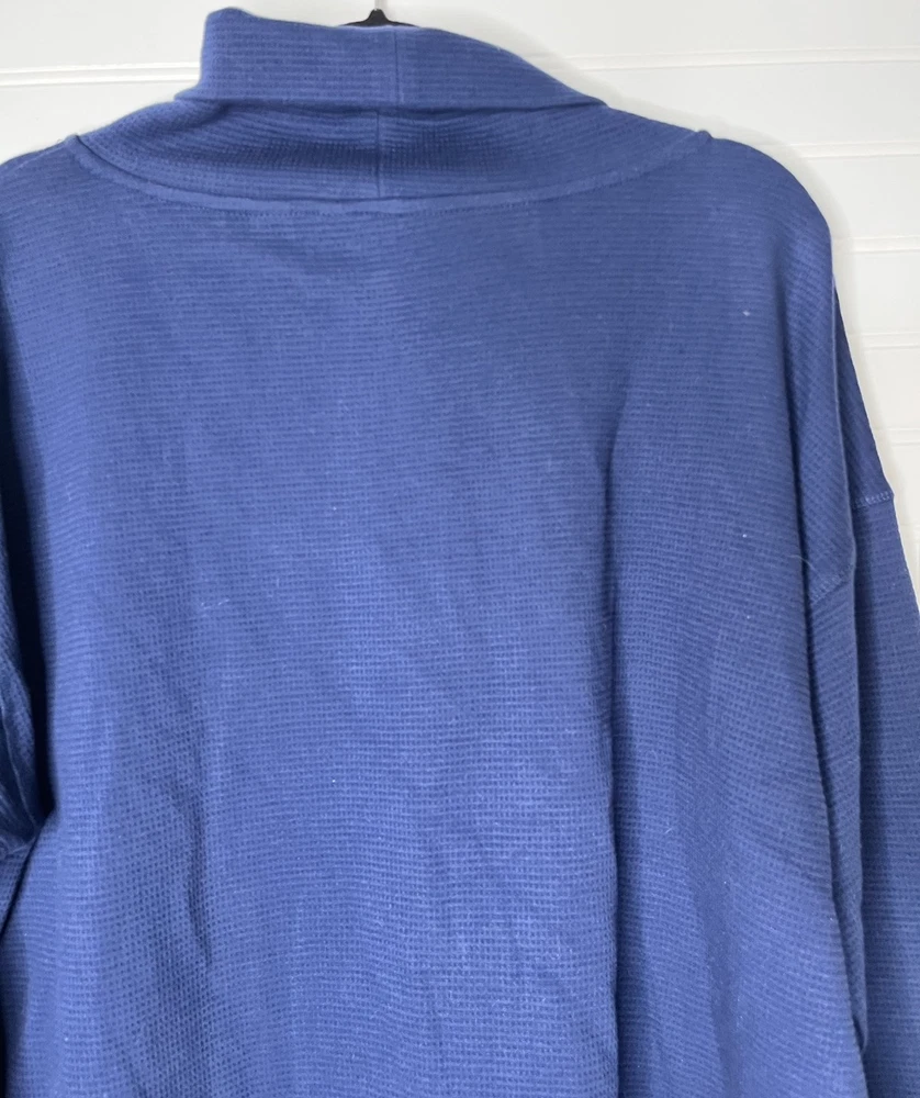 This is a cozy and classic navy blue top from Lands' End in size 2XL. It features a long sleeve design with a waffle texture and a stylish funnel neckline for added warmth and comfort. The pullover closure makes it easy to wear, and the top is suitable for casual occasions. Perfect for plus-size women looking for a comfortable and stylish addition to their wardrobe.