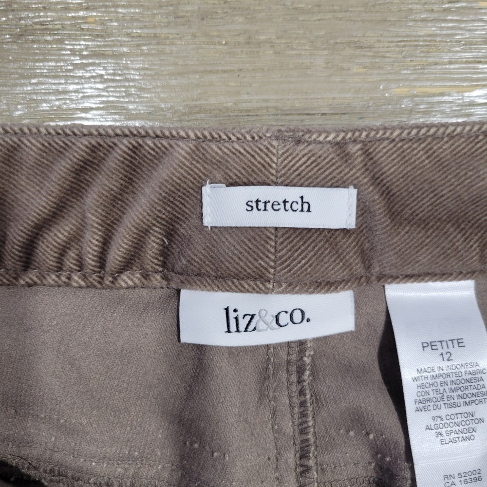 NWT Liz & Co. Corduroy Pants Women's Size 12 Petite Cozy Comfort Color Brown . Condition is New with imperfections. Shipped with USPS Ground Advantage....
