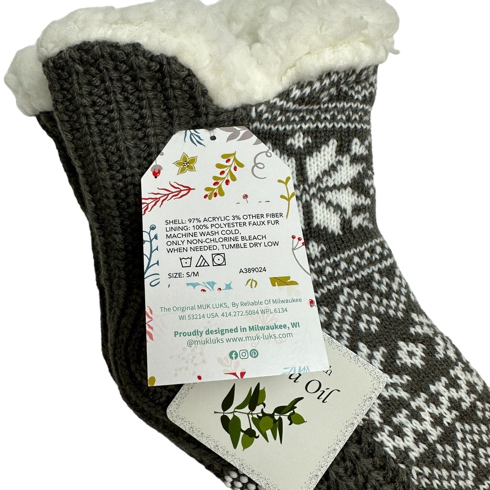 NWT Muk Luks Anti Slip Faux Fur Lined Socks Women Small/Medium 6-8 Gray Many Thanks Have a Lovely Day L2...