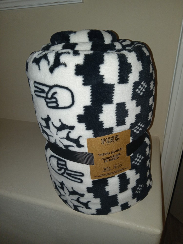 Victoria's Secret Blanket Throw w/ Peace and Dogs Size: 50 x 60" Color: Black and White 100% Polyester, Soft and Fluffy NWT, New and Perfect, as Pictured NON SMOKING!!!