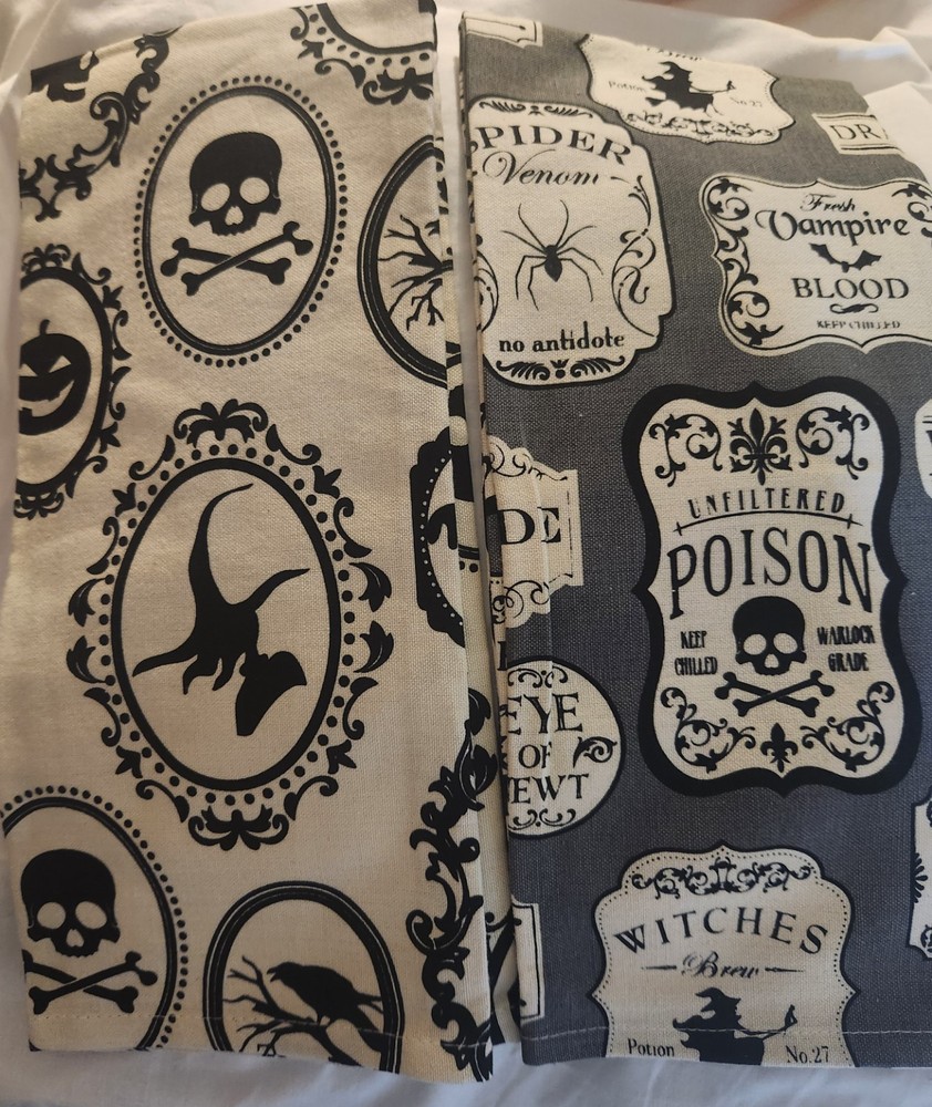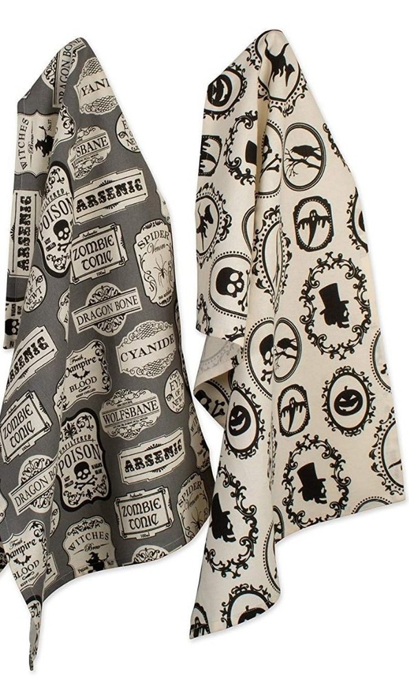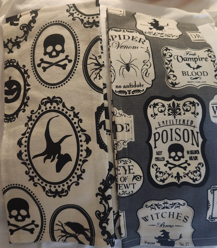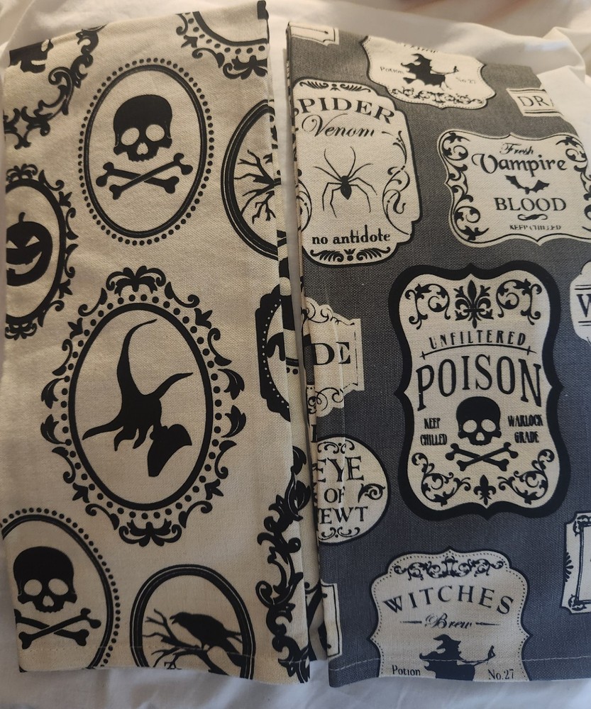 NWT Pair of Witchy Decorative Dish Towels Halloween Potion Spiders Bats - Set of 2 100% Cotton