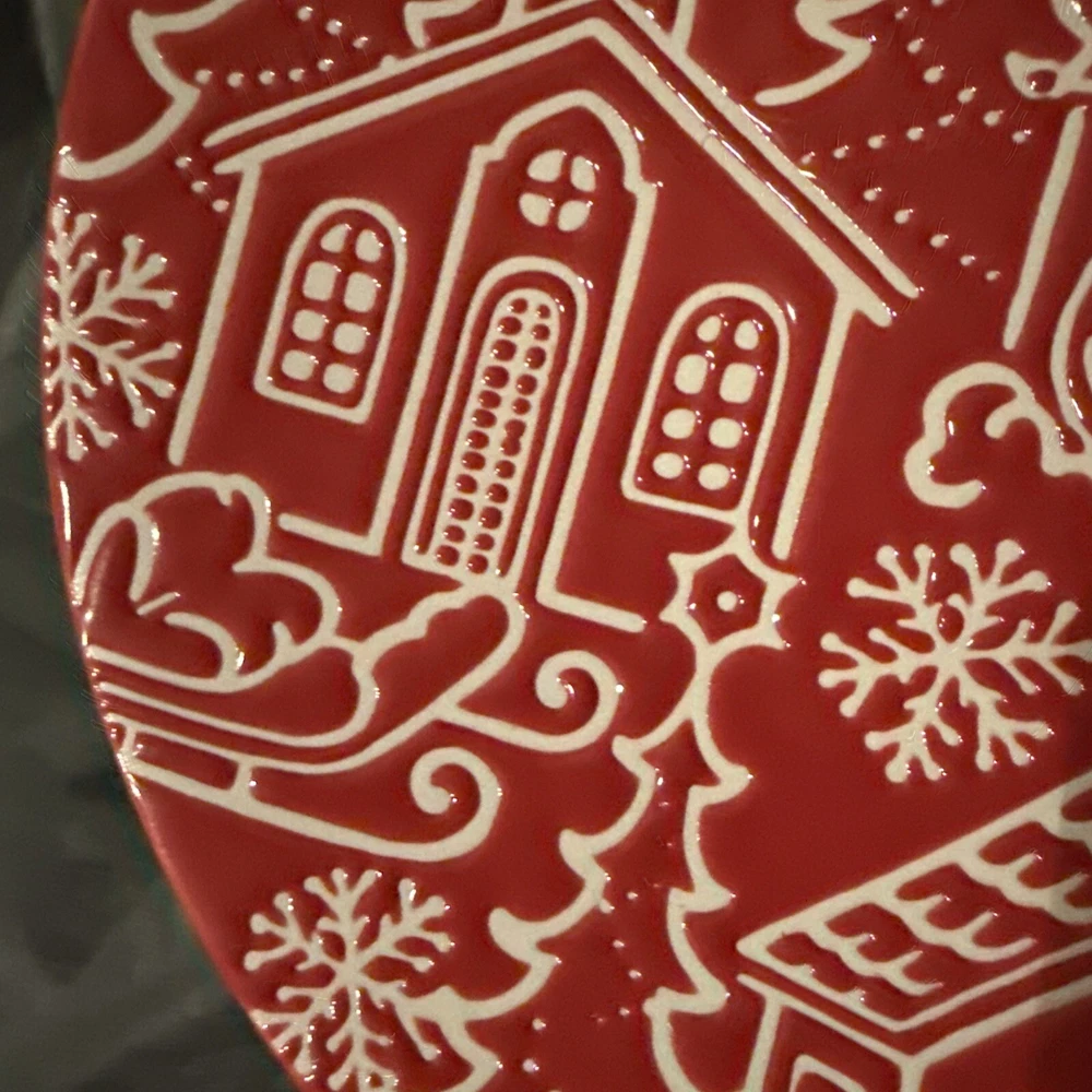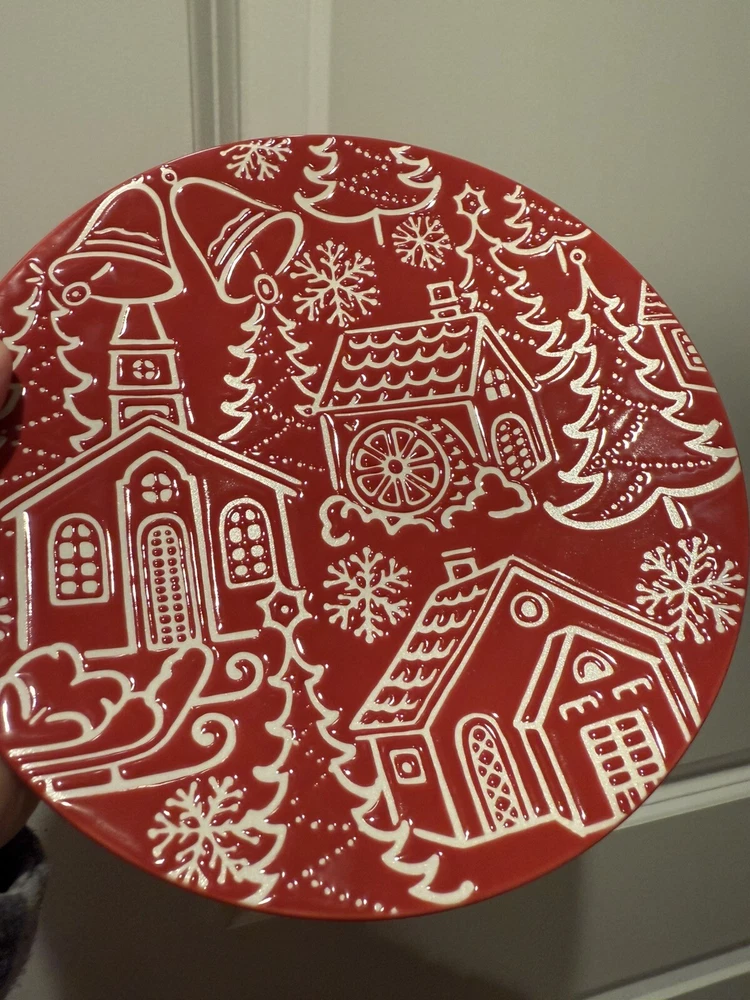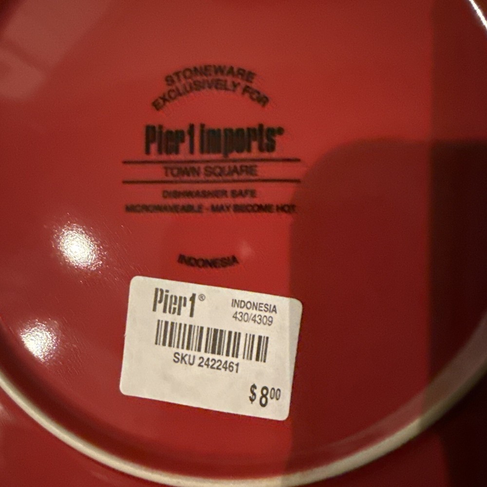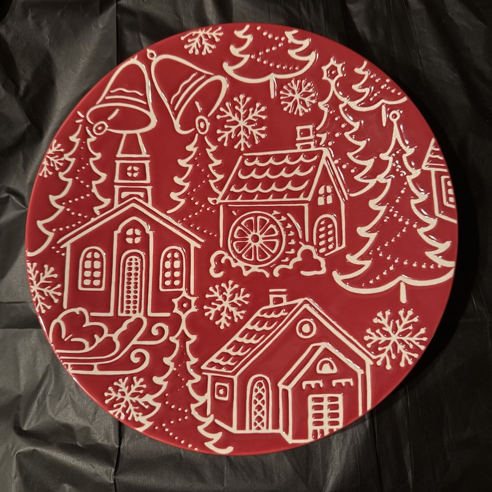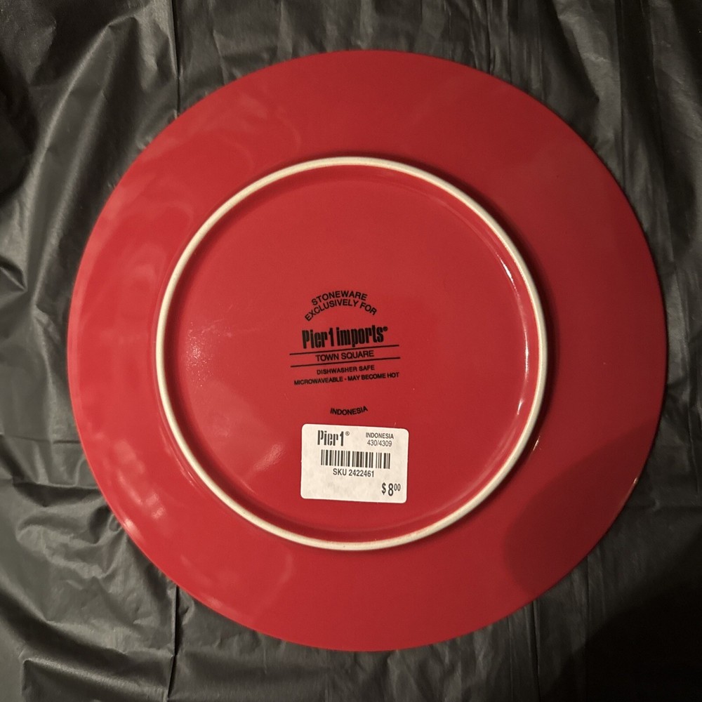 NWT Pier 1 One Vintage Towne Square Plate Red White Design Embossed Stoneware Add a touch of vintage charm to your holiday decor with this Pier One Imports Towne Square plate. The red and white design is embossed on glossy ceramic, with a contemporary style that's perfect for any room, from the kitchen to the dining room. This plate or decoration is 8-1/8" D in both length and width and is dishwasher safe for easy cleanup. The plate features a Santa Claus and seasonal theme, making it perfect for Christmas and winter holidays. It comes in a unit quantity of one, and is made in Indonesia. This product line is called Towne Square, and it's a great addition to any home decor. Smoke free, pet friendly home So beautiful this vintage plate is … such amazing detail and just an absolute eyeful! So fun, festive and merry! Wonderful!