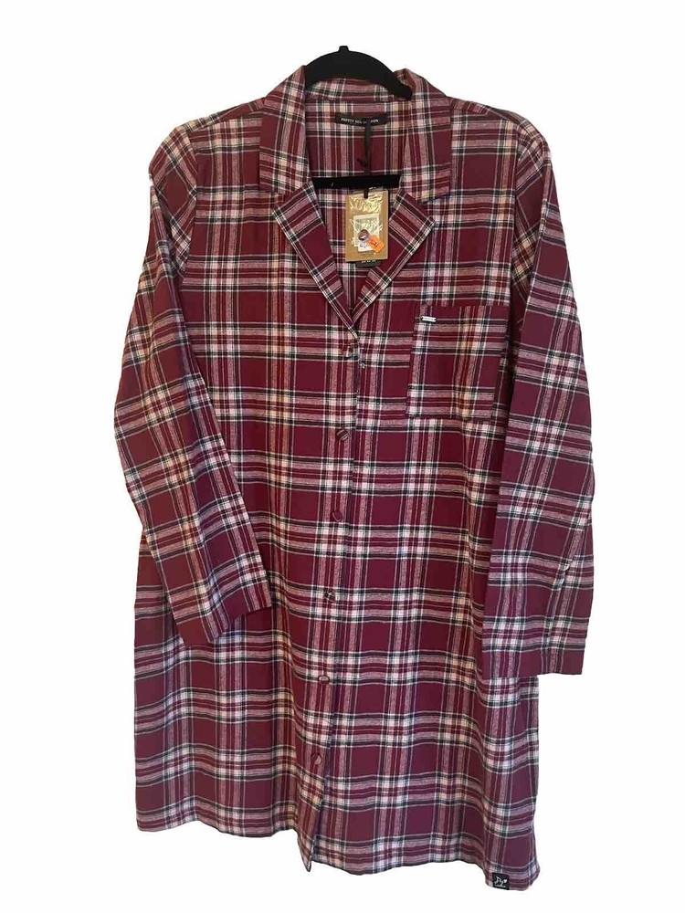 Indulge in ultimate comfort with this cozy cotton plaid nightshirt from Pretty You London. The London themed pattern adds a fun touch to your loungewear collection while the soft material ensures a comfortable sleep. This sleepshirt comes in a size L, perfect for women who prefer regular fit. The maroon color complements the plaid pattern, making it a stylish addition to your sleepwear collection. Ideal for a relaxing night in or a lazy Sunday morning, this sleepshirt is a must-have.