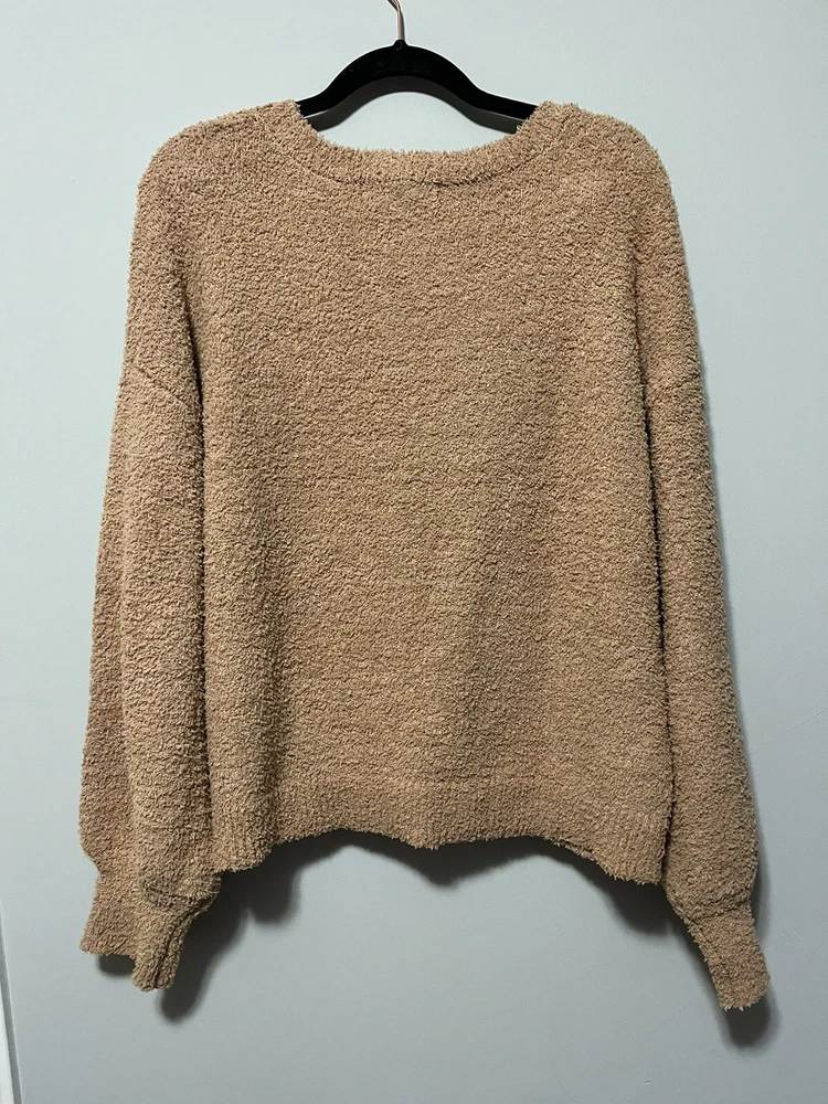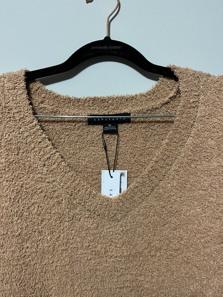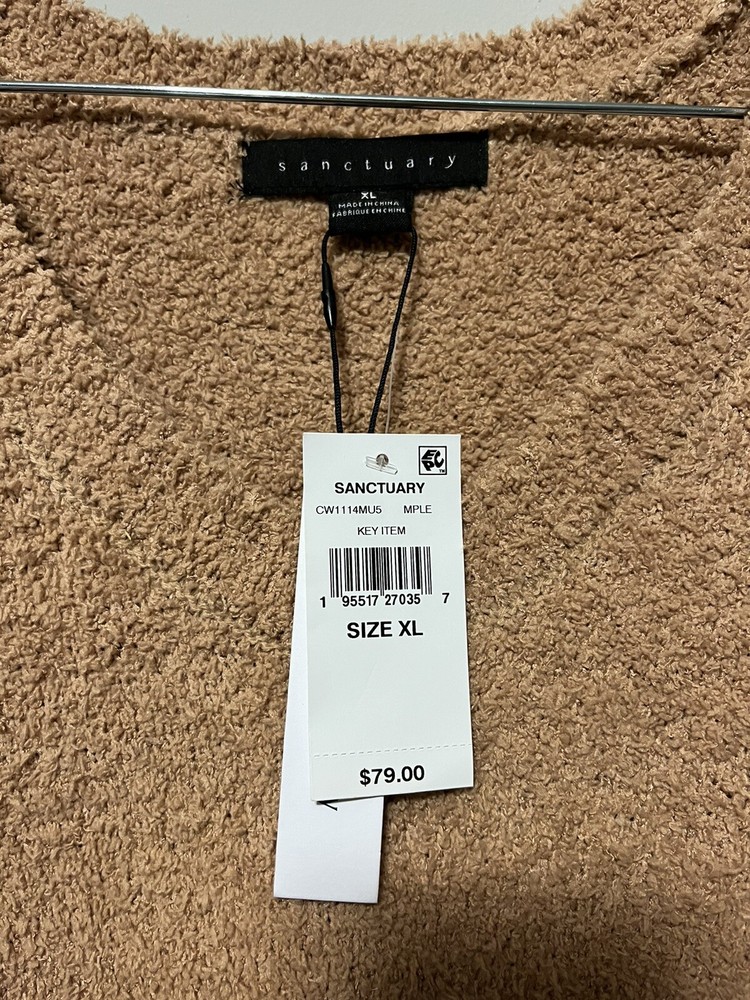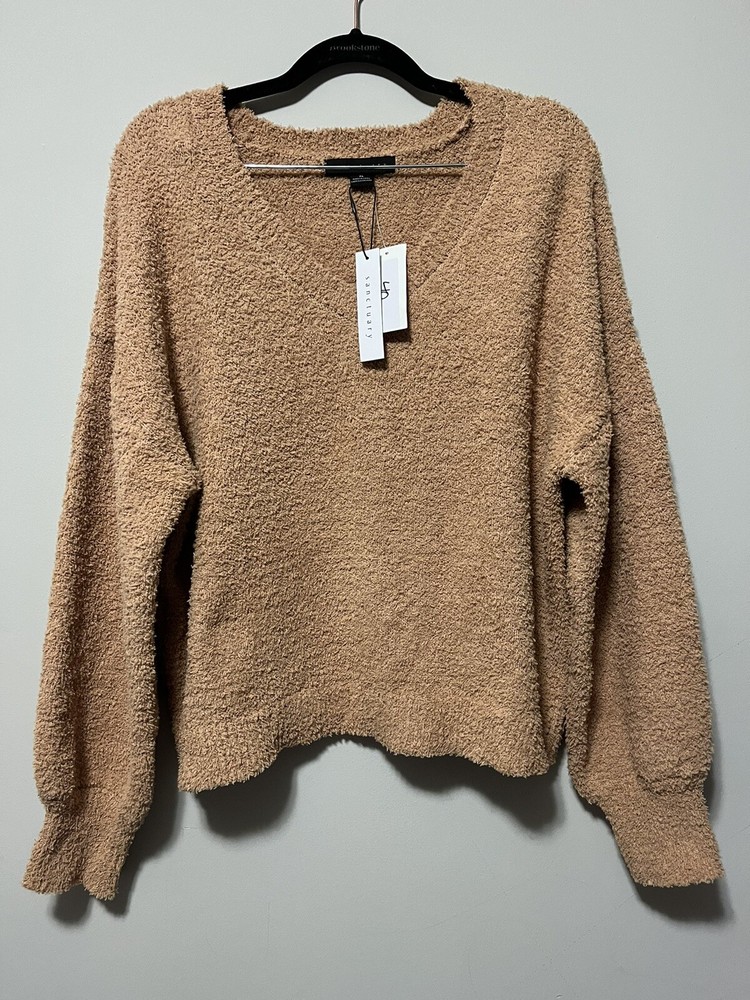 This beautiful Sanctuary women's sweater is a must-have for any fashion-conscious woman. The cozy pullover sweater features a textured V-neck, long balloon sleeves, and is made from 100% polyester material. The sweater comes in the lovely Maple color and fits women's size XL. Ideal for casual occasions during the winter season, this sweater is perfect for those who enjoy comfort and style. The sweater is a regular fit and has a teddy character that gives it a unique look. You'll love wearing this piece thanks to its high-quality material and chic design. Order now and elevate your wardrobe with this stunning pullover sweater from Sanctuary. New with tags. No flaws. MSRP $79