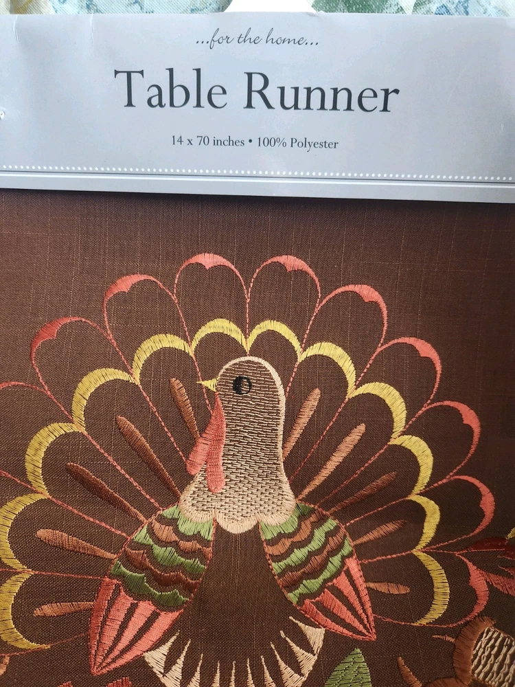 NWT Table Runner Thanksgiving Turkey 70” x 14” 100% Polyester Machine Wash Cold Tumble Dry Low Iron Condition is New....