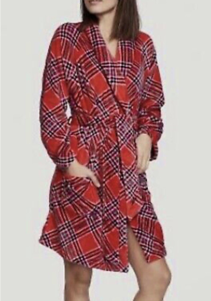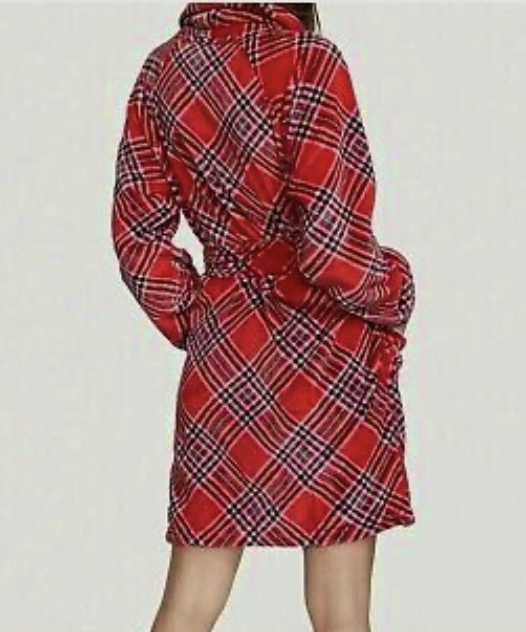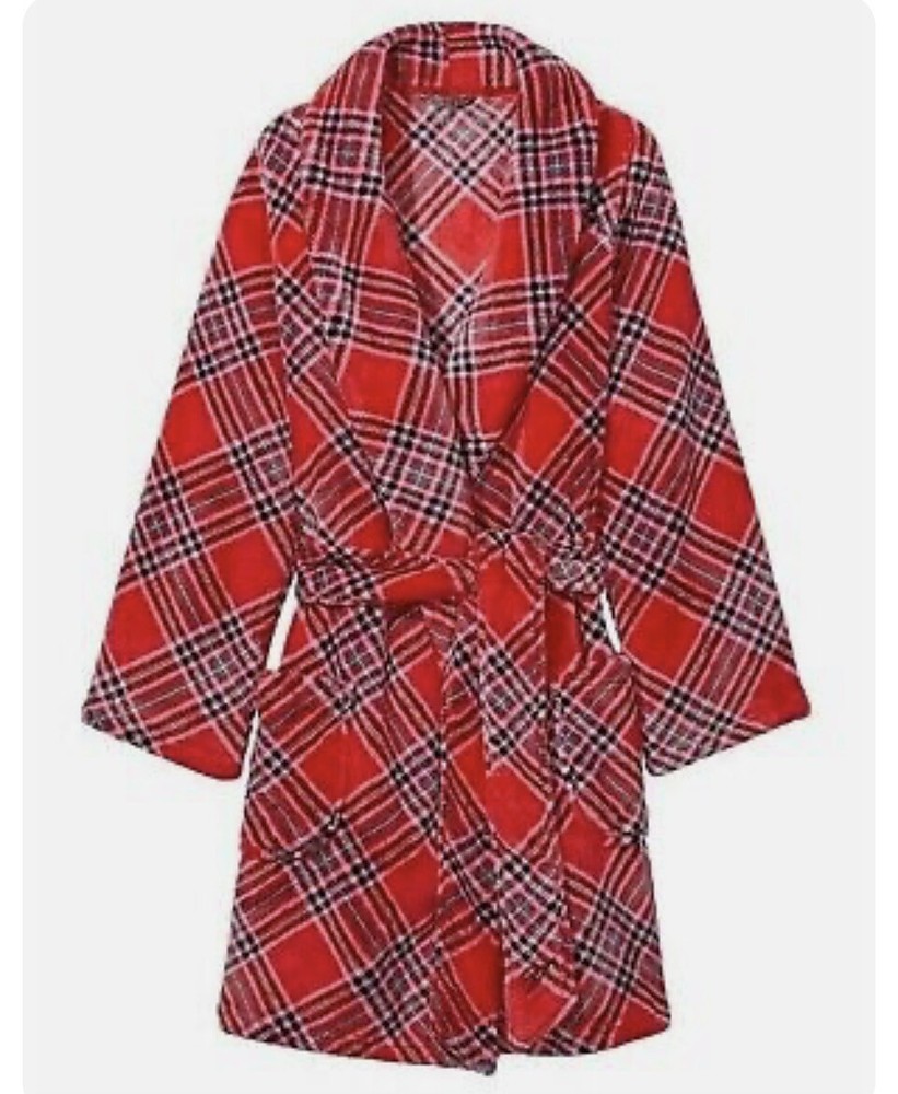 Brand new with tags plush robe from Victoria’s Secret. This robe has long sleeves and hits at about knee length. It has a super soft cozy fabric. It is size medium/large. The color is Lipstick Plaid. Shipping will be USPS ground advantage.