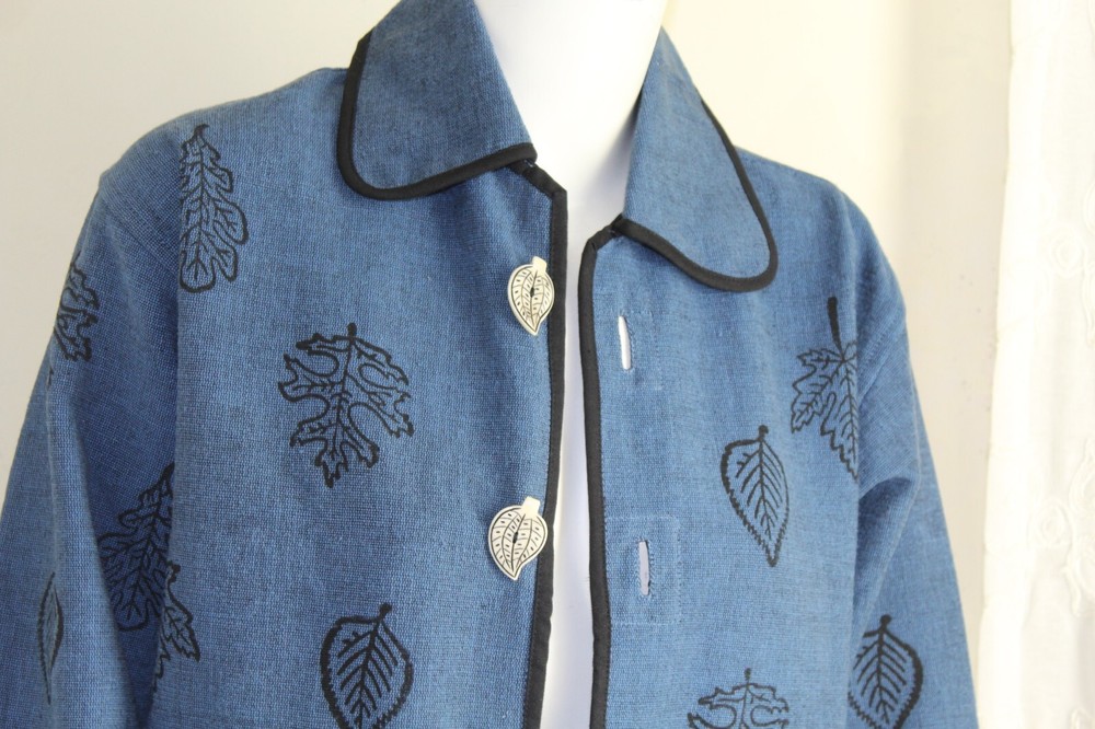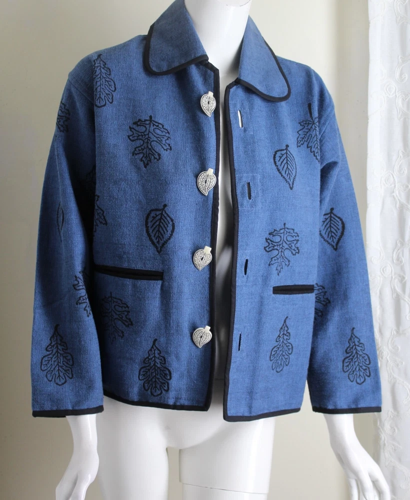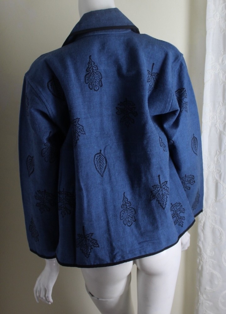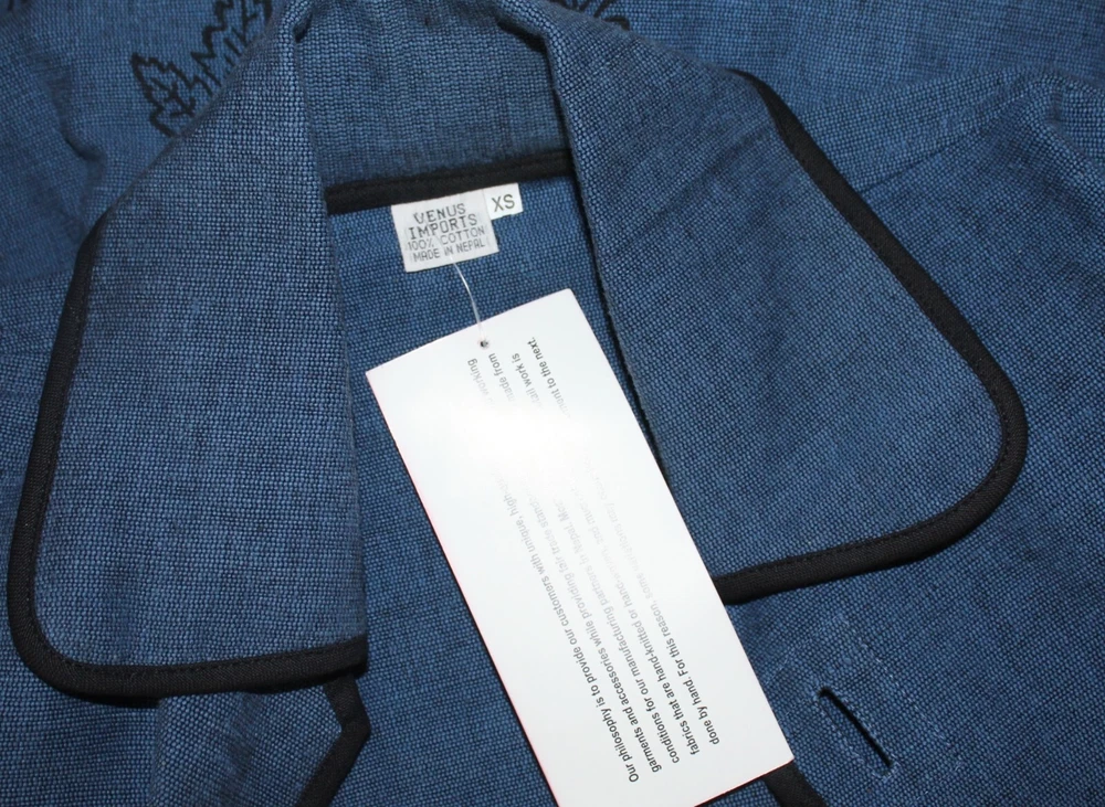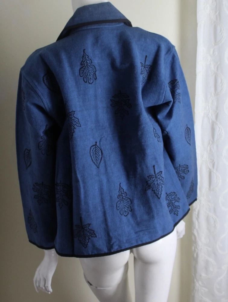 From a very fine clothing collection...please see my other items for more interesting items....click 'save' this seller to follow our store.... Funky super cool jacket from Venus Imports....a boutique brand..this is an exceptional handwoven cotton Nepalese jacket with a classic collar, long sleeves, two front pockets...a fabulous leaf depiction with great buttons...in in the beautiful cotton and printing.... Really special. note, size XS but runs generous. Made in Nepal... 100% Cotton, Dry clean New with tags. MEASUREMENTS: 41 inch bust, 17.5 inches across top shoulder, 20 inch sleeve length, 23 inch length, 42 inches around bottom hem Inventory code:MY1-25-BIN321 Thank you for viewing. A giant thank you to our wonderful customers in the U.S. and Internationally....we've had over 15 wonderful years on eBay! Check out my store for more fabulous hand-woven and art-to-wear garments! Please let me know if you have any questions. I offer combined shipping , please message me for more information and check out my other items. I also offer discounts to returning customers, message me if you've stopped back. International customers: eBAY GLOBAL SHIPPING.