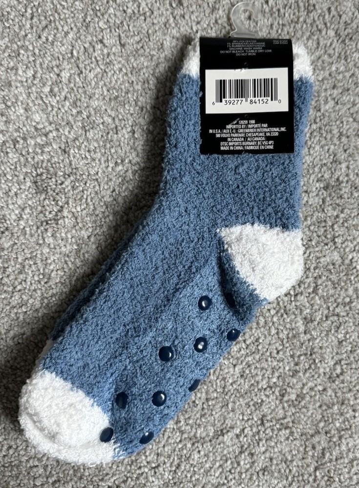 New with tags Snugadoo too blue and white soft socks with blue polka dot tread. If you have any questions or would like additional photos feel free to send me a message, thanks for looking!