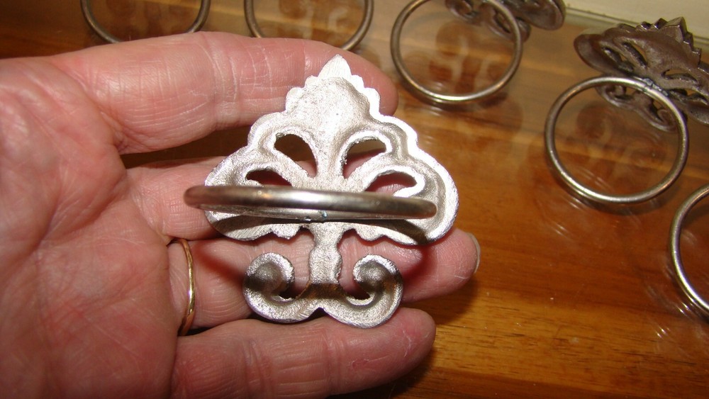 * VINTAGE AND/OR PREOWNED ITEMS ARE USED AND WILL GENERALLY SHOW SIGNS OF NORMAL USAGE/WEAR. IF YOU ARE PURCHASING A PREOWNED OR VINTAGE ITEM PLEASE DO NOT EXPECT A BRAND NEW ITEM FREE OF FLAWS. PICTURES ARE PART OF THE DESCRIPTION; USE THE ZOOM FOR A CLOSER LOOK. note: if item is on a stand – stand is not included unless otherwise noted. please take out a ruler and match your measurements to what is listed in the auction – this way you are sure of the size that you are receiving :) condition: normal wear from light use item: napkin rings description: silverton, fleur de lis, lot of, nickel metal measurements: 2" high x 2" wide x 2" deep color: silvertone maker: design imports made: unknown PLEASE NOTE: I DO MY BEST TO BE ACCURATE, THOROUGH AND PRECISE -- BUT I AM NOT PERFECT -- PLEASE NOTIFY ME IF THERE ARE ANY PROBLEMS. A COURTESY EMAIL GOES A LONG WAY :) PAYMENT IS DUE WITHIN 3 DAYS OF AUCTION END - UNLESS IT IS A BUY IT NOW - THEN IT IS DUE IMMEDIATELY. I TRY TO BE AS CLOSE TO ITEMS WEIGHT AS POSSIBLE TO KEEP SHIPPING COSTS LOW - USUALLY I OFFER STANDARD SHIPPING FIRST TO KEEP THE COST AT ACTUAL - AND THEN ABSORB A SMALL FEE TO SHIP IT PRIORITY INSTEAD. BUT IN THE EVENT THAT i CAN NOT ABSORB THE FEE –( KEEP IN MIND THAT PARCEL POST COMES WITH NO INSURANCE) . PRIORITY WILL NOT BE EXTENDED IF THE ITEM CAN BE SENT FIRST CLASS. I AM A STRONG BELIEVER IN RECYCLING – SOMETIMES THE OUTSIDE BOX DOESN’T LOOK PERFECT – BUT THE INSIDE ITEMS WILL BE .LASTLY - I LOOK FORWARD TO HAVING A PLEASANT TRANSACTION WITH YOU; DOING MY BEST TO ASSURE THE ITEM YOU HAD ENOUGH INTEREST TO BID ON ARRIVES AT YOUR DOOR IN A SAFE AND TIMELY MANNER.