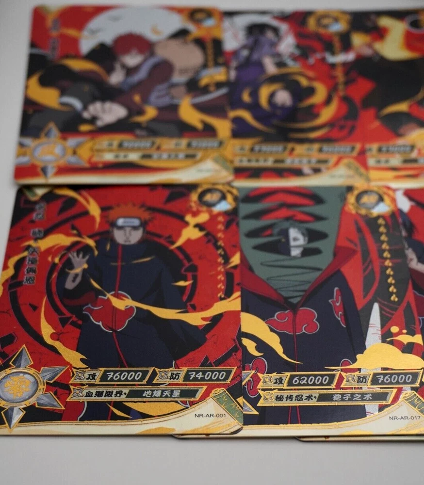 Naruto Kayou Collectable Trading Cards AR-001 - AR-066 Pick your card and complete your set today! Orders over $20 will be shipped USPS Ground Advantage! Daily shipping from the US! All cards are from pack to sleeve and will be NM/M! Cards will be protected during shipping with tracking! I will attempt to keep all cards in stock with more cards on the way! Thank you for your interest! If you have any questions please feel free to reach out! The Naruto Kayou AR Anime Card set features characters such as Naruto Uzumaki, Sakura Haruno, and Sasuke Uchiha in a Multi-Color holo finish. Manufactured in 2022 by Kayou in China, these standard-sized cards are part of the Naruto CCG game franchise and are in Chinese language. Each card is made of card stock and includes Augmented Reality (AR) features, adding a unique element to the collectible card game experience. Fans can choose their favorite character cards to complete their set and enhance their gameplay with these rare and special AR Naruto Kayou cards. Cards may have whitening or edge wear. This happens during production. All cards are from pack to sleeve, and reviewed before shipping to filter any damaged cards. Please reach out with any questions! Card List: AR-001 - Pain AR-002 - Konan AR-003 - Deidara AR-004 - Sasori AR-005 - Itachi Uchiha AR-006 - Kisame Hoshigaki AR-007 - Hidan AR-008 - Kazuku AR-009 - Tobi AR-010 - Black Zetsu AR-011 - Itachi Uchiha AR-012 - Kisame Hoshigaki AR-013 - Deidara AR-014 - Sasori AR-015 - Kisame Hoshigaki AR-016 - Deidara AR-017 - Black Zetsu AR-018 - Itachi Uchiha AR-019 - Sasori AR-020 - Obito Uchiha AR-021 - Kaguya Otsutsuki AR-022 - Madara Uchiha AR-023 - Itachi Uchiha (Anbu) AR-024 - Kakashi Hatake (Anbu) AR-025 - Jiraiya AR-026 - Tsunade AR-027 - Orochimaru AR-028 - Gaara AR-029 - Sasuke Uchiha AR-030 - Naruto Uzumaki (Sage Mode) AR-031 - Minato Namikaze AR-032 - Boruto Uzumaki AR-033 - Mitsuki AR-034 - Hinata Hyuga AR-035 - Sarada Uchiha AR-036 - Sasuke Uchiha AR-037 - Kakashi Hatake AR-038 - Killer B AR-039 - Deidara AR-040 - Kabuto Yakushi AR-041 - Obito Uchiha AR-042 - Konan AR-043 - Obito Uchiha AR-044 - Temari AR-045 - Rock Lee AR-046 - Neji Hyuga AR-047 - Choji Akimichi AR-048 - Nagato AR-049 - Hinata Hyuuga AR-050 - Ino Yamanaka AR-051 - Black Zetsu AR-052 - Kiba Inuzuka AR-053 - Jiraiya AR-054 - Sai AR-055 - Hidan AR-056 - Tenten AR-057 - Danzo Shimura AR-058 - Zabuza Momochi AR-059 - Shino Aburame AR-060 - Sasuke Uchiha AR-061 - Obito Uchiha AR-062 - Yamato AR-063 - Moegi Kazamatsuri AR-064 - Naruto Uzumaki AR-065 - Mei Terumi AR-066 - Rin Nohara