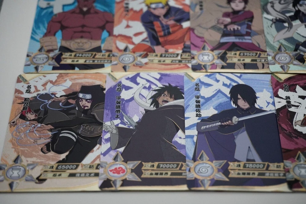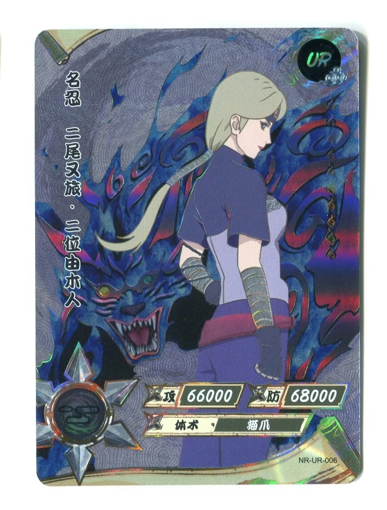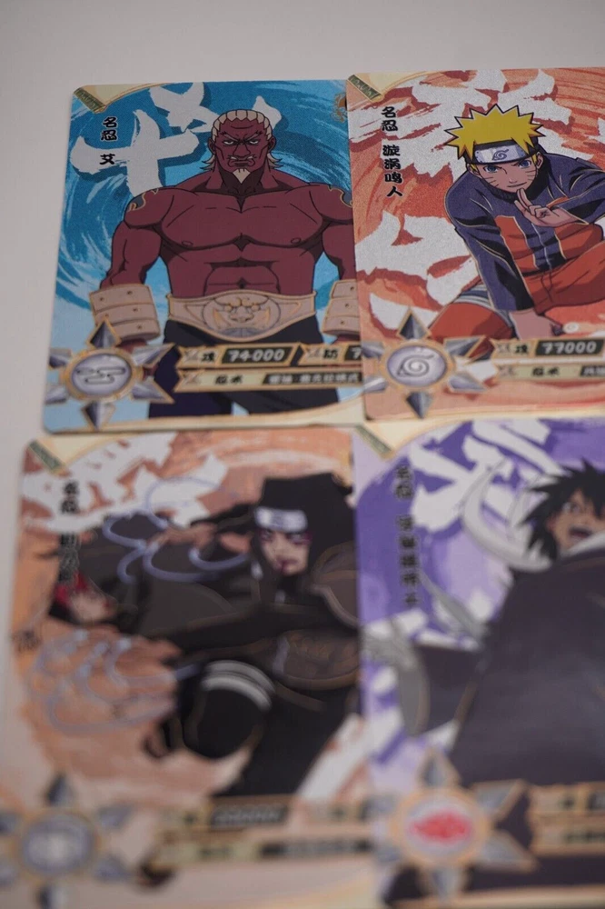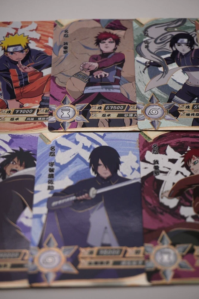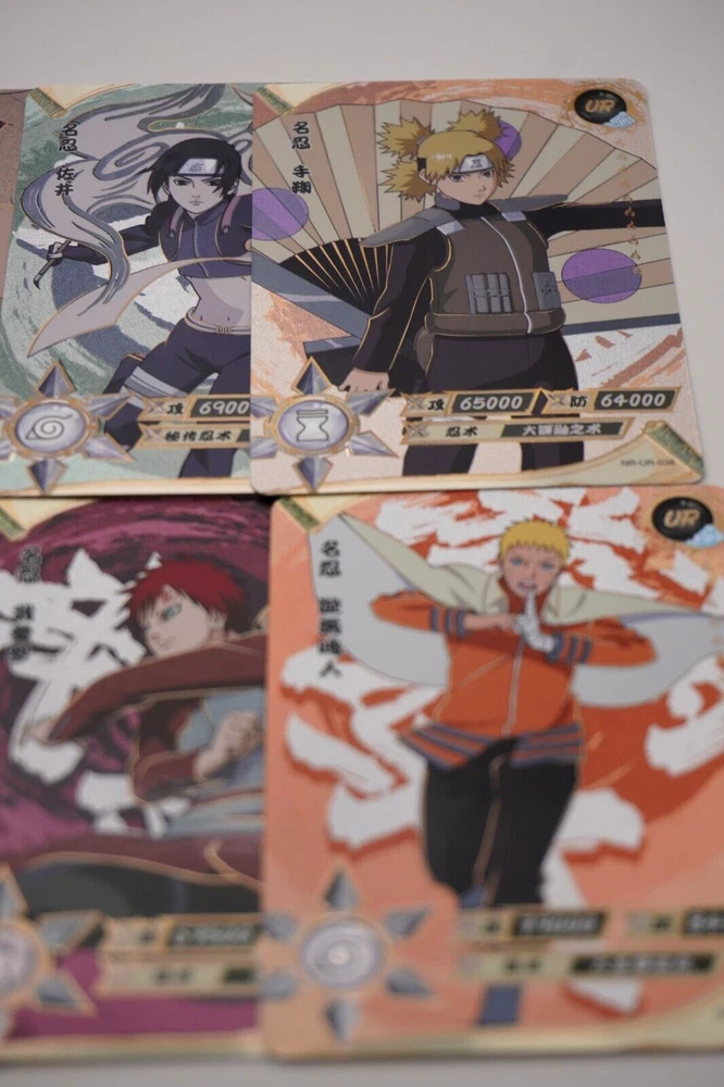 Naruto Kayou Collectable Trading Cards UR-001 - UR-129 Pick your card and complete your set today! Orders over $20 will be shipped USPS Ground Advantage! Daily shipping from the US! All cards are from pack to sleeve and will be NM/M! Cards will be protected during shipping with tracking! I will attempt to keep all cards in stock with more cards on the way! Thank you for your interest! If you have any questions please feel free to reach out! The "Naruto Kayou UR" card is a part of the Naruto CCG set and features characters like Naruto Uzumaki, Sakura Haruno, and Sasuke Uchiha. Manufactured in 2022 by Kayou in China, this Multi-Color foil card is part of the Naruto Kayou series and is considered a Ultra Rare (UR) rarity. The card is standard-sized and made of card stock, with alternative art and full art of the characters depicted. It is a sought-after collectible for fans of the Naruto franchise and collectors of rare CCG cards. Cards may have whitening or edge wear. This happens during production. All cards are from pack to sleeve, and reviewed before shipping to filter any damaged cards. Please reach out with any questions! Card List: UR-001 - A UR-002 - Onoki UR-003 - Mei Terumi UR-004 - Danzo Shimura UR-005 - Gaara & Shukaku UR-006 - Yugito Nii & Matatabi UR-007 - Yagura Karatachi & Isobu UR-008 - Roshi & Son Goku UR-009 - Han & Kokuo UR-010 - Utakata & Saiken UR-011 - Fu & Chomei UR-012 - Killer B & Gyuki UR-013 - Naruto Uzumaki & Kurama UR-014 - Sasuke Uchiha UR-015 - Sakura Haruno UR-016 - Jiraiya UR-017 - Tsunade UR-018 - Orochimaru UR-019 - Kakashi Hatake UR-020 - Might Guy UR-021 - Zabuza Momochi UR-022 - Kimimaro UR-023 - Asuma Sarutobi UR-024 - Kurenai Yuhi UR-025 - Kabuto Yakushi UR-026 - Tobirama Senju UR-027 - Hashirama Senju UR-028 - Hiruzen Sarutobi UR-029 - Obito Uchiha UR-030 - A UR-031 - Shikamaru Nara UR-032 - Naruto Uzumaki UR-033 - Naruto Uzumaki (Sage Mode) UR-034 - Gaara & Shukaku UR-035 - Sai UR-036 - Sasuke Uchiha UR-037 - Choji Akimichi UR-038 - Temari UR-039 - Kankuro UR-040 - Obito Uchiha UR-041 - Neji Hyuga UR-042 - Naruto Uzumaki UR-043 - Sasuke Uchiha UR-044 - Sakura Haruno UR-045 - Hinata Hyuga UR-046 - Naruto Uzumaki UR-047 - Madara Uchiha UR-048 - Kiba Inuzuka UR-049 - Rock Lee UR-050 - Itachi Uchiha UR-051 - Minato Namikaze UR-052 - Might Guy UR-053 - Kimimaro UR-054 - Sasuke Uchiha UR-055 - Gaara UR-056 - Naruto Uzumaki UR-057 - Boruto Uzumaki UR-058 - Obito Uchiha UR-059 - Ino Yamanaka UR-060 - Rock Lee UR-061 - Naruto Uzumaki UR-062 - Chocho Akimichi UR-063 - Tenten UR-064 - Sasuke Uchiha UR-065 - Haku UR-066 - Tsunade UR-067 - Ino Yamanaka UR-068 - Kushina Uzumaki UR-069 - Kimimaro UR-070 - Naruto Uzumaki UR-071 - Naruto Uzumaki UR-072 - Kiba Inuzuka UR-073 - Kurenai Yuhi UR-074 - Jiraiya UR-075 - Sarada Uchiha UR-076 - Sasuke Uchiha UR-077 - Naruto Uzumaki (Sage Mode) UR-078 - Danzo Shimura UR-079 - Indra Otsutsuki UR-080 - Nagato UR-081 - Deidara UR-082 - Mitsuki UR-083 - Iwabee Yuino UR-084 - Sakura Haruno UR-085 - Sakura Haruno UR-086 - Yamato UR-087 - Orochimaru UR-088 - Tsunade UR-089 - Might Guy UR-090 - Naruto Uzumaki (Sage Mode) UR-091 - Killer B UR-092 - Samui UR-093 - Mu UR-094 - Iruka Umino UR-095 - Chojuro UR-096 - Shino Aburame UR-097 - Haku UR-098 - Anko Mitarashi UR-099 - Yugao Uzuki UR-100 - Naruto Uzumaki UR-101 - Karin UR-102 - Shino Aburame UR-103 - Sai UR-104 - Shikamaru Nara UR-105 - Orochimaru UR-106 - Deidara UR-107 - Tsunade (Young) UR-108 - Gold and Silver Brothers UR-109 - Might Duy UR-110 - Neji Hyuga UR-111 - Suigetsu Hozuki UR-112 - Karin UR-113 - Sakura Haruno UR-114 - Uchiha Sasuke UR-115 - Naruto Uzumaki UR-116 - Sasuke Uchiha UR-117 - Sakura Haruno UR-118 - Kakashi Hatake UR-119 - Zabuza Momochi UR-120 - Haku UR-121 - Iruka Umino UR-122 - Shikamaru Nara UR-123 - Choji Akimichi UR-124 - Ino Yamanaka UR-125 - Neji Hyuga UR-126 - Rock Lee UR-127 - Tenten UR-128 - Hinata Hygua UR-129 - Kiba Inuzuka