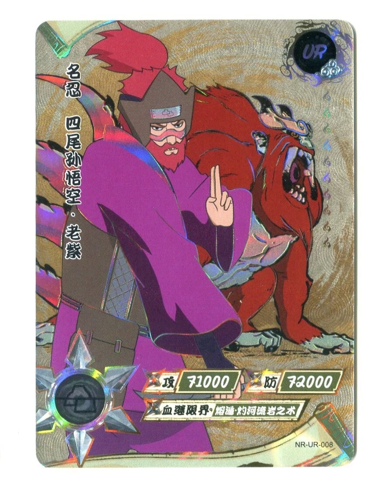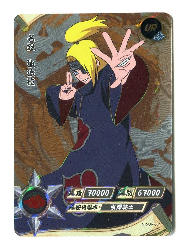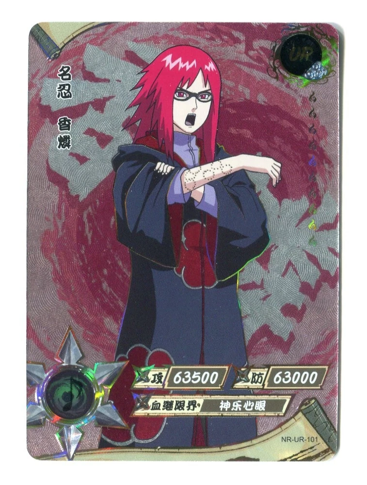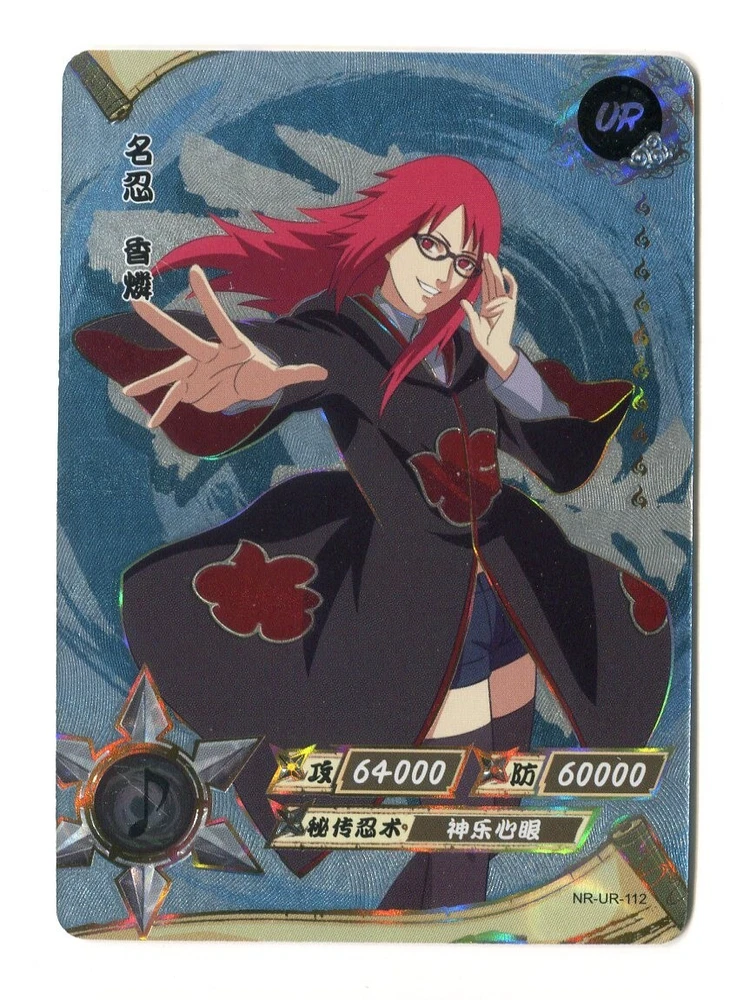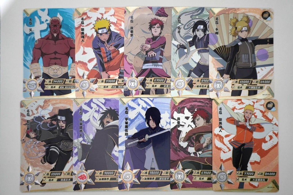 Naruto Kayou Collectable Trading Cards UR-001 - UR-129 Pick your card and complete your set today! Orders over $20 will be shipped USPS Ground Advantage! Daily shipping from the US! All cards are from pack to sleeve and will be NM/M! Cards will be protected during shipping with tracking! I will attempt to keep all cards in stock with more cards on the way! Thank you for your interest! If you have any questions please feel free to reach out! The "Naruto Kayou UR" card is a part of the Naruto CCG set and features characters like Naruto Uzumaki, Sakura Haruno, and Sasuke Uchiha. Manufactured in 2022 by Kayou in China, this Multi-Color foil card is part of the Naruto Kayou series and is considered a Ultra Rare (UR) rarity. The card is standard-sized and made of card stock, with alternative art and full art of the characters depicted. It is a sought-after collectible for fans of the Naruto franchise and collectors of rare CCG cards. Cards may have whitening or edge wear. This happens during production. All cards are from pack to sleeve, and reviewed before shipping to filter any damaged cards. Please reach out with any questions! Card List: UR-001 - A UR-002 - Onoki UR-003 - Mei Terumi UR-004 - Danzo Shimura UR-005 - Gaara & Shukaku UR-006 - Yugito Nii & Matatabi UR-007 - Yagura Karatachi & Isobu UR-008 - Roshi & Son Goku UR-009 - Han & Kokuo UR-010 - Utakata & Saiken UR-011 - Fu & Chomei UR-012 - Killer B & Gyuki UR-013 - Naruto Uzumaki & Kurama UR-014 - Sasuke Uchiha UR-015 - Sakura Haruno UR-016 - Jiraiya UR-017 - Tsunade UR-018 - Orochimaru UR-019 - Kakashi Hatake UR-020 - Might Guy UR-021 - Zabuza Momochi UR-022 - Kimimaro UR-023 - Asuma Sarutobi UR-024 - Kurenai Yuhi UR-025 - Kabuto Yakushi UR-026 - Tobirama Senju UR-027 - Hashirama Senju UR-028 - Hiruzen Sarutobi UR-029 - Obito Uchiha UR-030 - A UR-031 - Shikamaru Nara UR-032 - Naruto Uzumaki UR-033 - Naruto Uzumaki (Sage Mode) UR-034 - Gaara & Shukaku UR-035 - Sai UR-036 - Sasuke Uchiha UR-037 - Choji Akimichi UR-038 - Temari UR-039 - Kankuro UR-040 - Obito Uchiha UR-041 - Neji Hyuga UR-042 - Naruto Uzumaki UR-043 - Sasuke Uchiha UR-044 - Sakura Haruno UR-045 - Hinata Hyuga UR-046 - Naruto Uzumaki UR-047 - Madara Uchiha UR-048 - Kiba Inuzuka UR-049 - Rock Lee UR-050 - Itachi Uchiha UR-051 - Minato Namikaze UR-052 - Might Guy UR-053 - Kimimaro UR-054 - Sasuke Uchiha UR-055 - Gaara UR-056 - Naruto Uzumaki UR-057 - Boruto Uzumaki UR-058 - Obito Uchiha UR-059 - Ino Yamanaka UR-060 - Rock Lee UR-061 - Naruto Uzumaki UR-062 - Chocho Akimichi UR-063 - Tenten UR-064 - Sasuke Uchiha UR-065 - Haku UR-066 - Tsunade UR-067 - Ino Yamanaka UR-068 - Kushina Uzumaki UR-069 - Kimimaro UR-070 - Naruto Uzumaki UR-071 - Naruto Uzumaki UR-072 - Kiba Inuzuka UR-073 - Kurenai Yuhi UR-074 - Jiraiya UR-075 - Sarada Uchiha UR-076 - Sasuke Uchiha UR-077 - Naruto Uzumaki (Sage Mode) UR-078 - Danzo Shimura UR-079 - Indra Otsutsuki UR-080 - Nagato UR-081 - Deidara UR-082 - Mitsuki UR-083 - Iwabee Yuino UR-084 - Sakura Haruno UR-085 - Sakura Haruno UR-086 - Yamato UR-087 - Orochimaru UR-088 - Tsunade UR-089 - Might Guy UR-090 - Naruto Uzumaki (Sage Mode) UR-091 - Killer B UR-092 - Samui UR-093 - Mu UR-094 - Iruka Umino UR-095 - Chojuro UR-096 - Shino Aburame UR-097 - Haku UR-098 - Anko Mitarashi UR-099 - Yugao Uzuki UR-100 - Naruto Uzumaki UR-101 - Karin UR-102 - Shino Aburame UR-103 - Sai UR-104 - Shikamaru Nara UR-105 - Orochimaru UR-106 - Deidara UR-107 - Tsunade (Young) UR-108 - Gold and Silver Brothers UR-109 - Might Duy UR-110 - Neji Hyuga UR-111 - Suigetsu Hozuki UR-112 - Karin UR-113 - Sakura Haruno UR-114 - Uchiha Sasuke UR-115 - Naruto Uzumaki UR-116 - Sasuke Uchiha UR-117 - Sakura Haruno UR-118 - Kakashi Hatake UR-119 - Zabuza Momochi UR-120 - Haku UR-121 - Iruka Umino UR-122 - Shikamaru Nara UR-123 - Choji Akimichi UR-124 - Ino Yamanaka UR-125 - Neji Hyuga UR-126 - Rock Lee UR-127 - Tenten UR-128 - Hinata Hygua UR-129 - Kiba Inuzuka