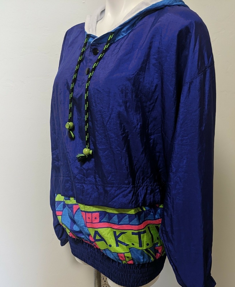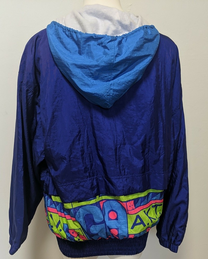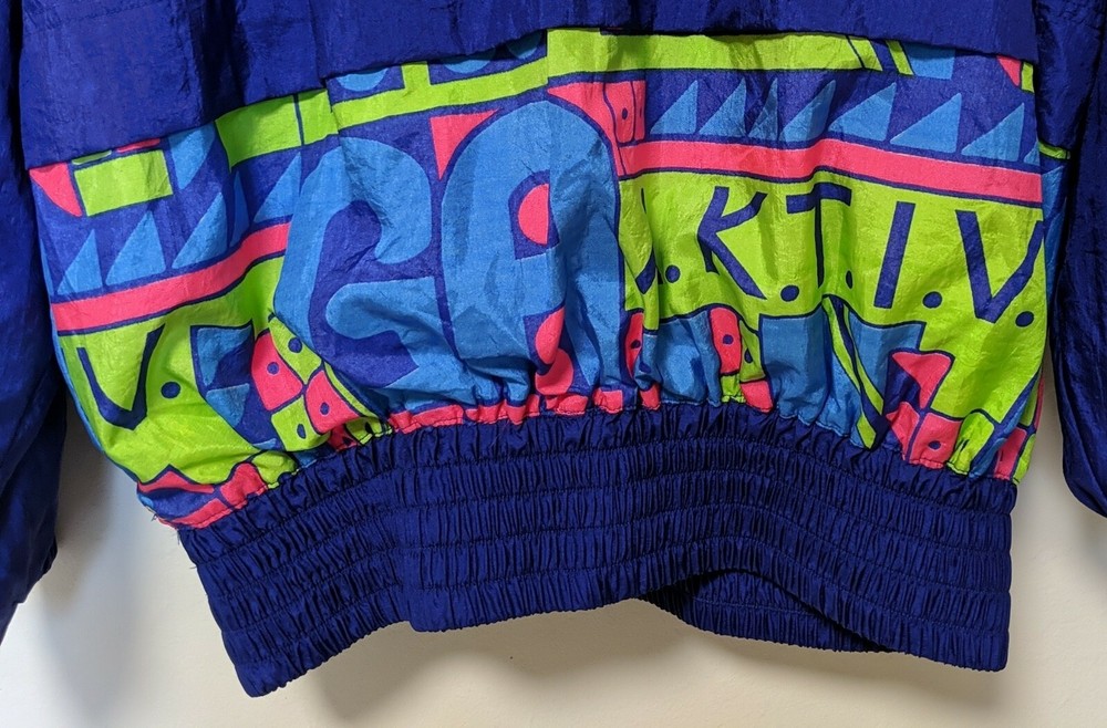 This vibrant Gitano windbreaker is a flawless retro gem! The neon colors pop beautifully, and the satin-like material feels luxurious. The elastic cuffs and waist are still snug, and the lining is pristine—it looks brand new with the original tag still attached. The snap-down hood and soft, lightweight design make it stylish and comfy. Perfect for adding an ‘80s flair to any outfit!