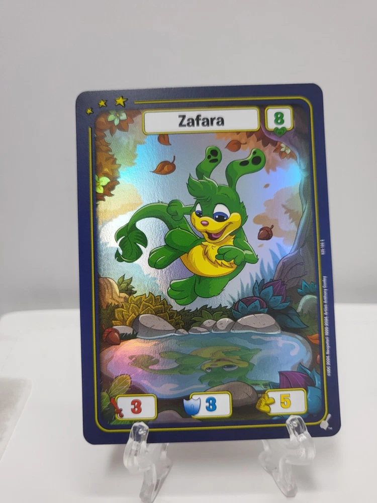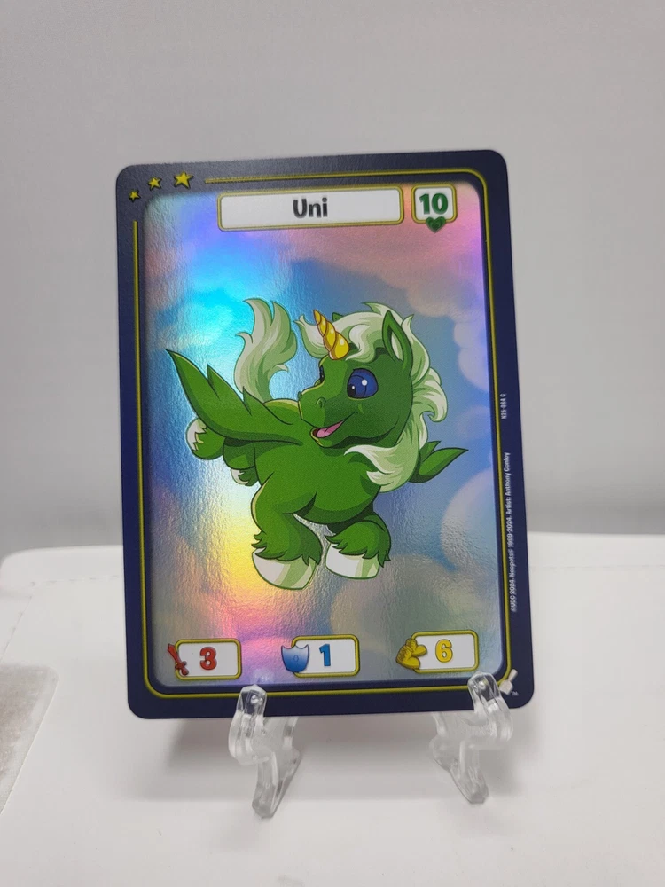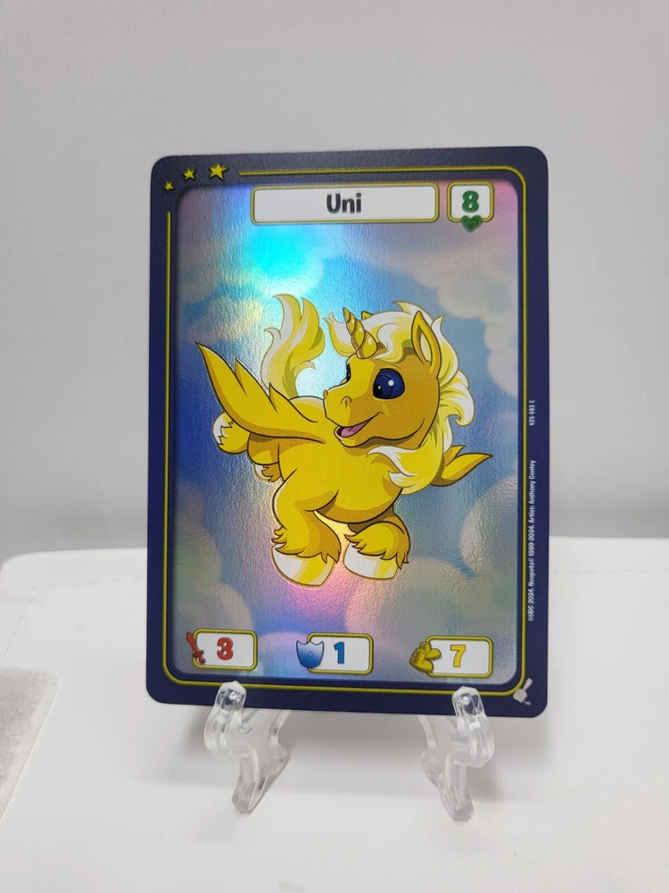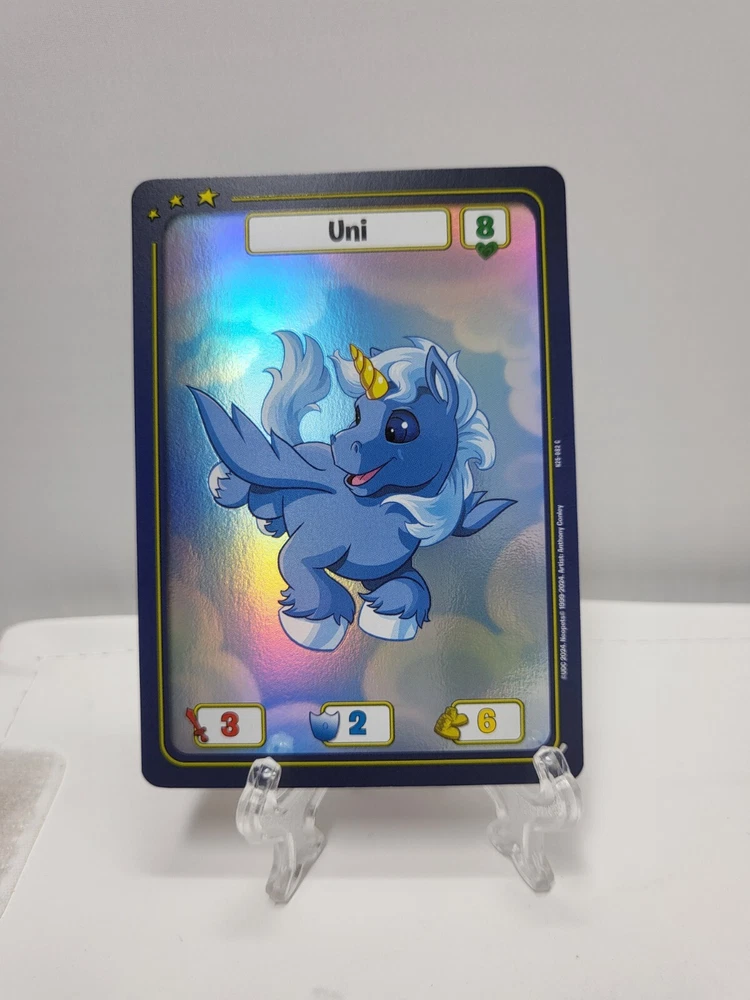 These textured foil Neopets TCG cards are a must-have for collectors! While they may have minor imperfections like edge wear or surface marks, the holo effect is stunning and adds great depth to the artwork. Perfect for completing your 25th anniversary set—just keep in mind they’re not mint condition. Great value for nostalgic fans!