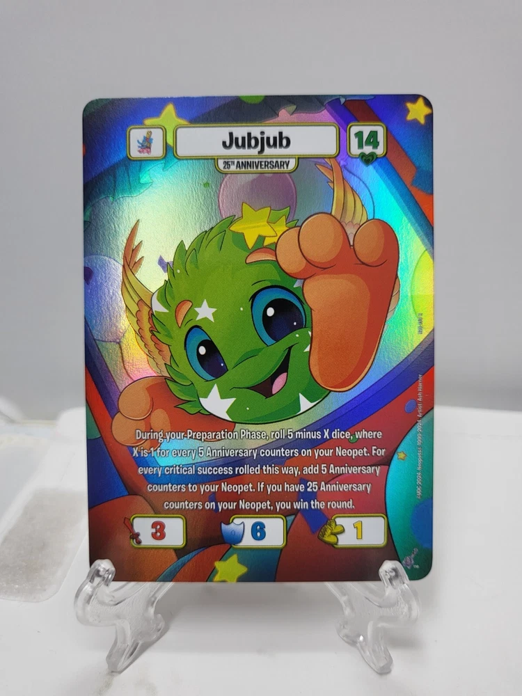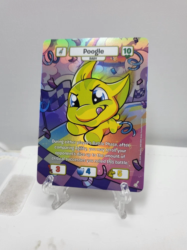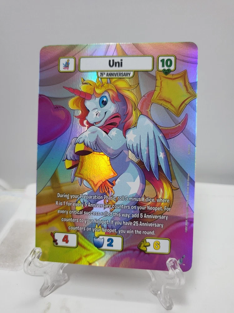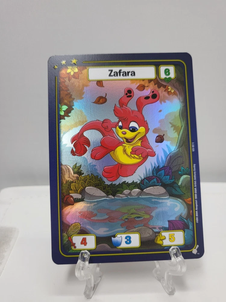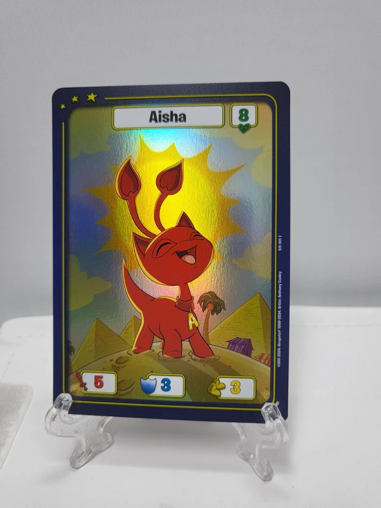 These textured foil Neopets TCG cards are a must-have for collectors! While they may have minor imperfections like edge wear or surface marks, the holo effect is stunning and adds great depth to the artwork. Perfect for completing your 25th anniversary set—just keep in mind they’re not mint condition. Great value for nostalgic fans!