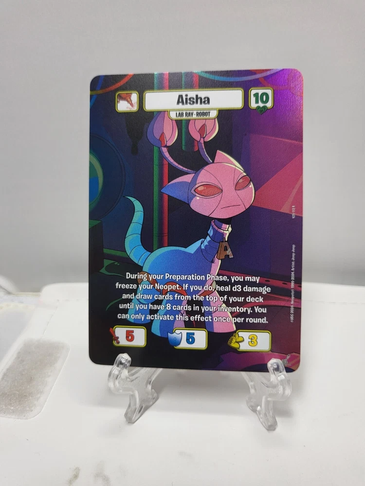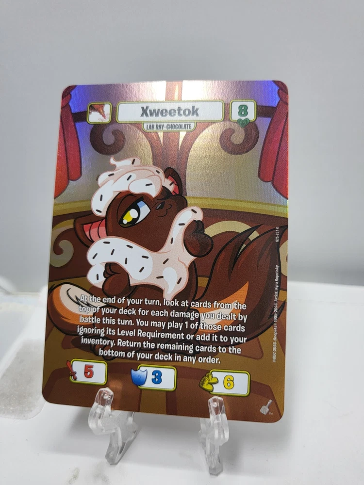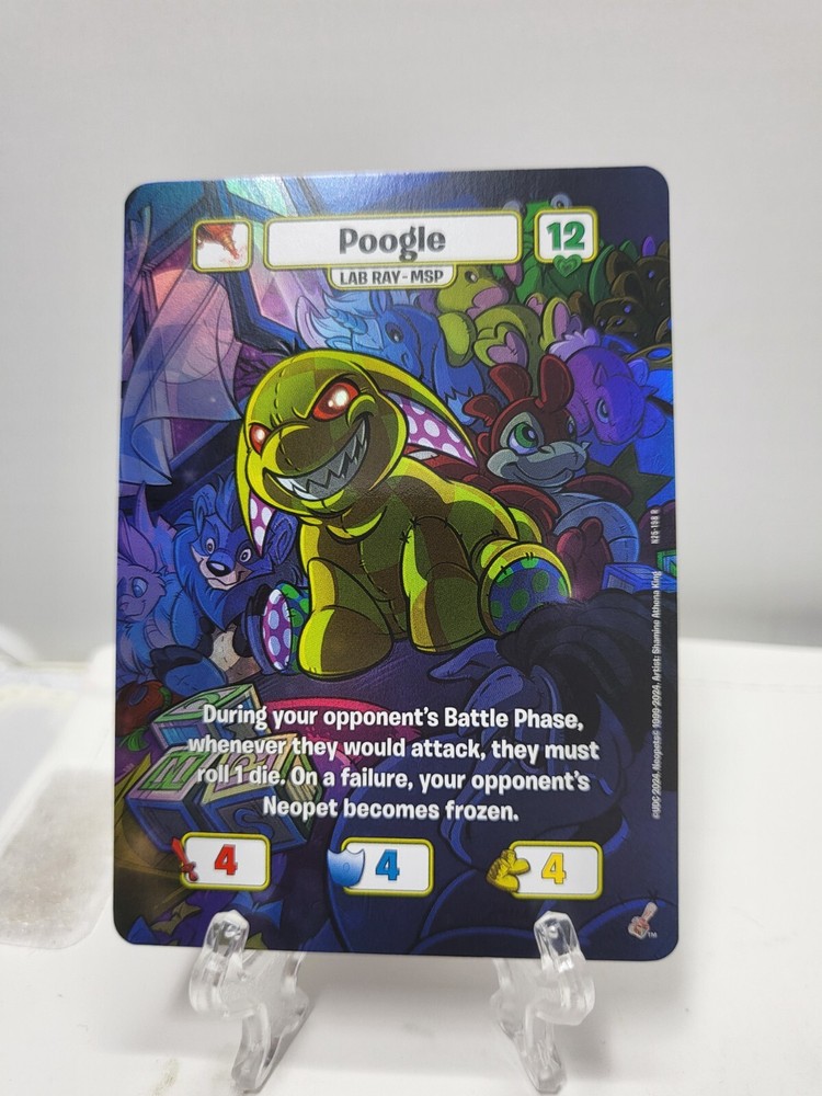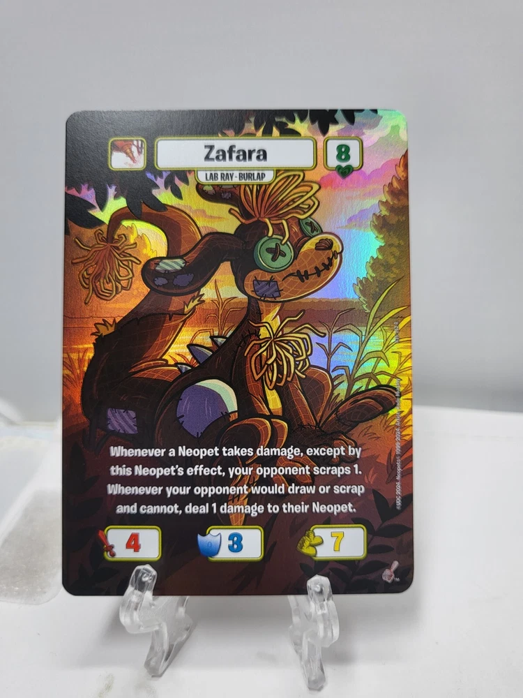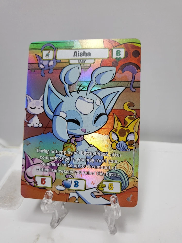 THIS IS FOR THE TEXTURED FOILS / TEXTURED HOLOS Pack fresh and sleeved but cards may have whitening, nicks, print/transition lines, lines on back, marks, indents, and/or curving. Some of the cards do have surface scratches and nicks on the edges. Please ask any questions prior to purchasing. Please note that this is a multi-quantity listing so you may not be receiving the exact card shown in the photos. Additional photos for each picture are examples of some damages that you can expect. Do not expect mint psa10 worthy cards Shipped USPS via ebay envelope. Check out our other listing for other neopets foils!