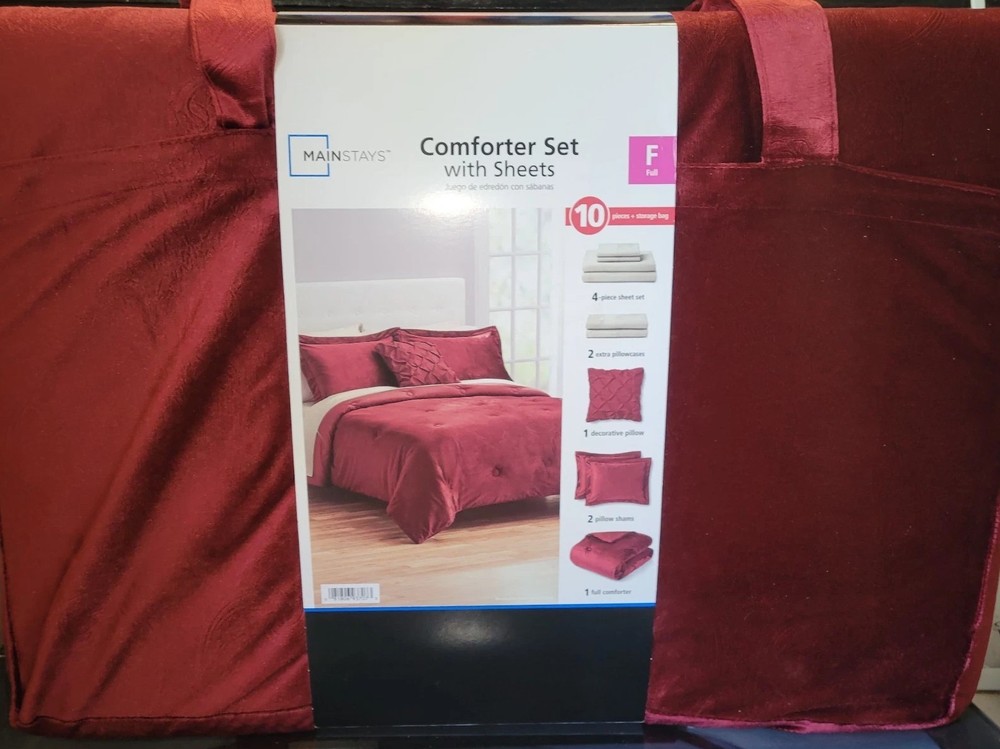 This comforter set is a game-changer! The crushed velvet feels so soft and luxurious, instantly upgrading my bedroom. The deep burgundy color adds a rich, elegant touch, and the full set includes everything I need for a complete makeover. The sheets are smooth, the pillows are plush, and the comforter keeps me cozy all night. It fits my full-size bed perfectly and looks way more expensive than it is. Super easy to care for, too—just toss it in the wash. Definitely worth every penny for the comfort and style!