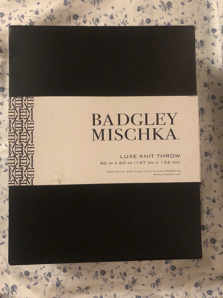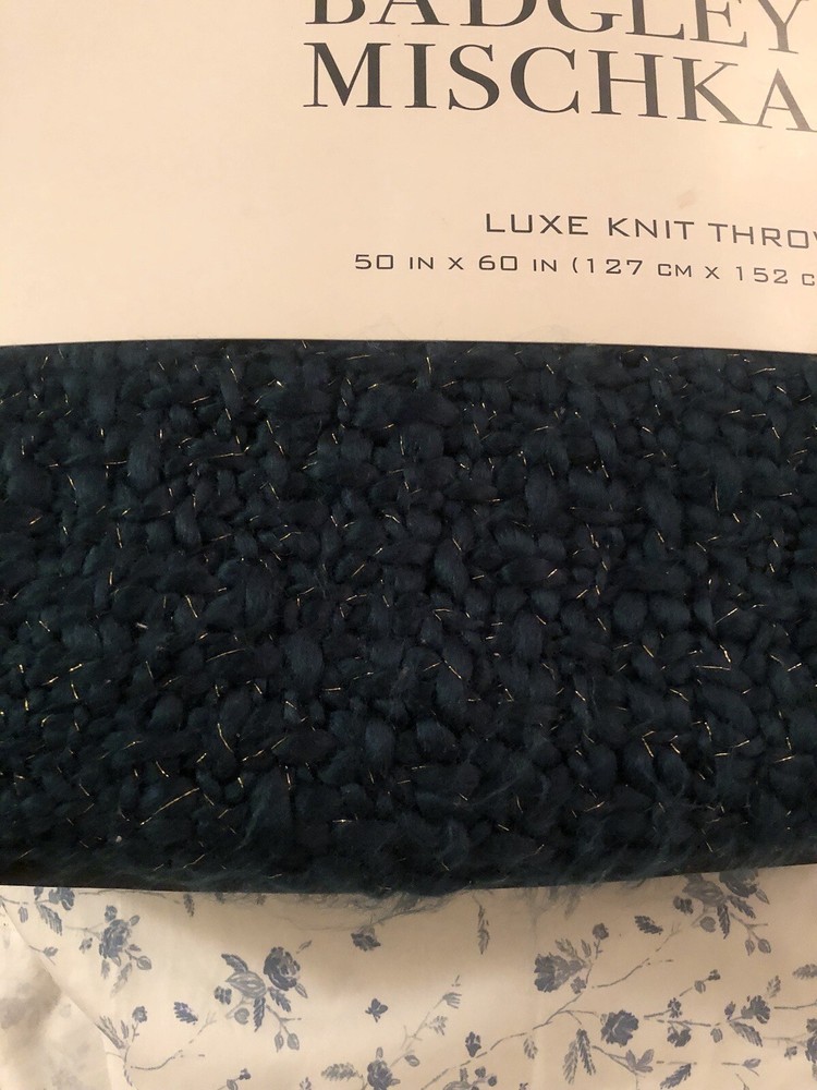 Add a touch of luxury and shimmer to your home decor with this beautiful Badgley Mischka throw blanket. The green color with gold thread and woven pattern gives it a chic and holiday vibe. Measuring at 50 x 60 inches, this rectangular acrylic blanket is perfect for snuggling up on the couch, while on a picnic, or in your bedroom. It features a knitted design and has no closure, making it easy to care for with just a spot clean. The Badgley Mischka brand ensures high-quality and style, making this throw blanket a perfect addition to your bedroom, living room, den, or even outside. 50 x 60 inches This is more of a rich deep green but it’s coming up slightly more blue on screen. Last pic is more accurate. Shipped with USPS