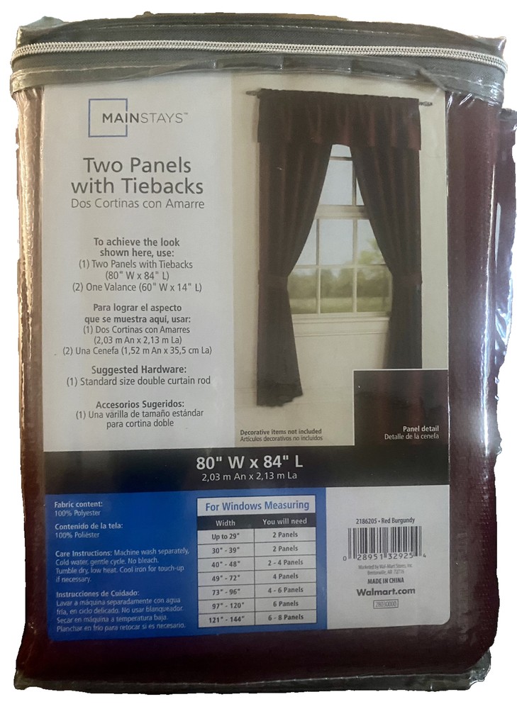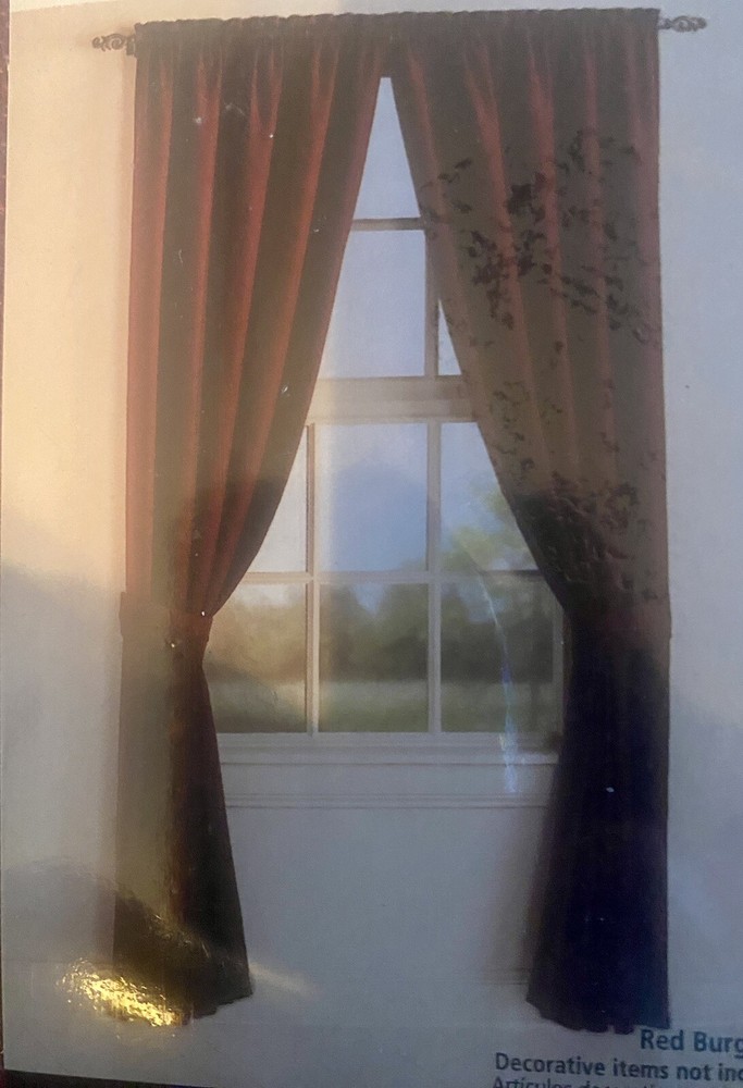 Two Panels Curtains With Tiebacks 80x84"L Red Burgundy Brand new in package See pictures for additional information