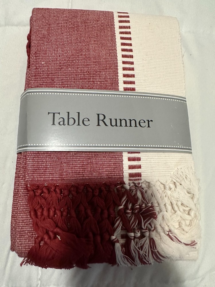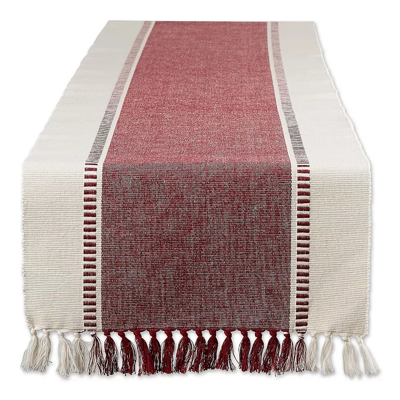 New Design Imports Dobby Stripe Table Runner Barn Red Ribbed 13x72 Design Imports' Striped Fringe Ribbed Table Runner is a highlight of our Dobby Stripe Tabletop Collection. Made with quality 100-percent cotton, the color block ribbed design coupled with the 1-inch knotted fringe adds texture and visual interest to your tabletop. Caring for this runner is easy, making it the ideal choice for everyday use. Protect your table while creating an inviting space for your loved ones with this stunning table runner. Shape: Rectangle Use: Outdoor, Indoor Measurements: 72 Length/Inches, 13 Width/Inches Base Material: 100% Cotton Care: Machine Wash Decor Styles: Casual Country of Origin: Imported D38 D34