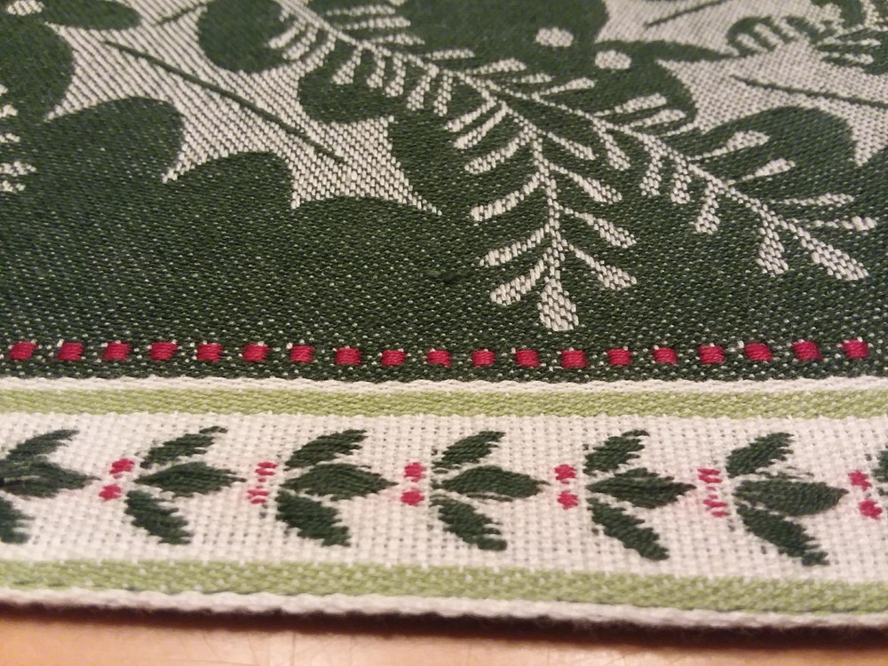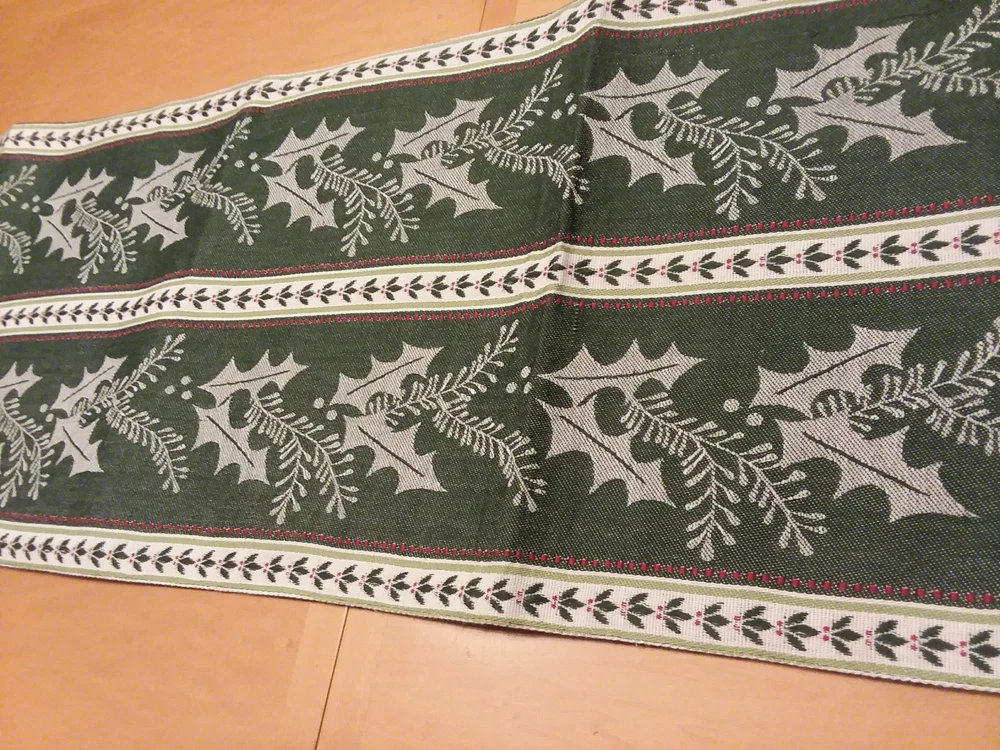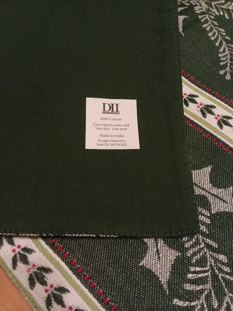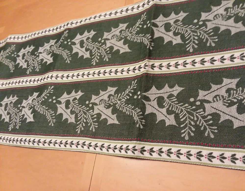 Brand - Design Imports, DII For the Home Size - 73" Length x 13" Width Color - Green, White, and Red Style - Pretty Table / Furniture Runner (Christmas / Winter / Holiday) Material - 100% Cotton Country - India Condition - New with Tag Feel free to email us with any additional questions! Thank You~ Inventory ID - H4 (For our use only)