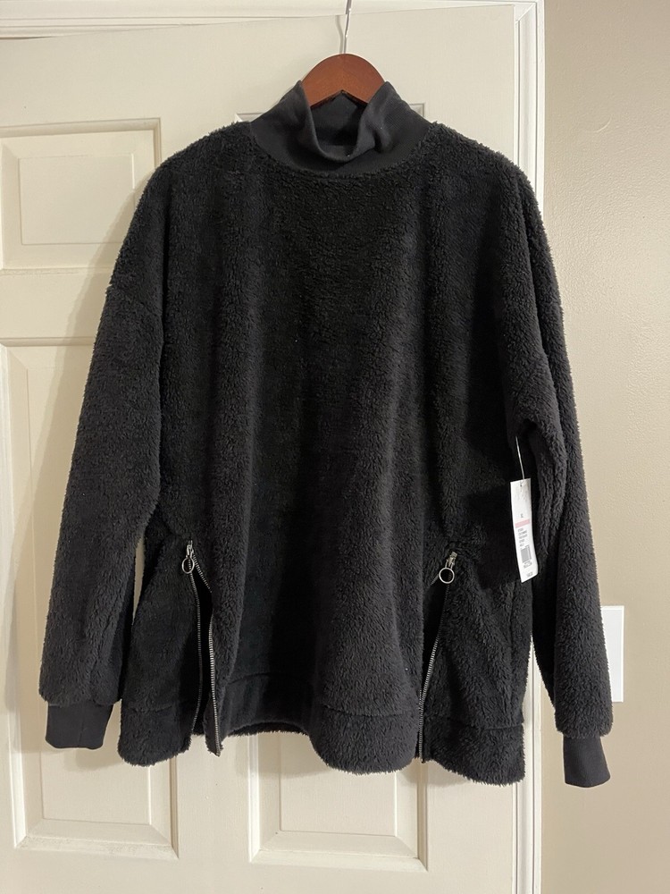 Super Cozy Pullover Sweater with Zipper Details, New with Tags, New Direction, XL, 100% Polyester, Black