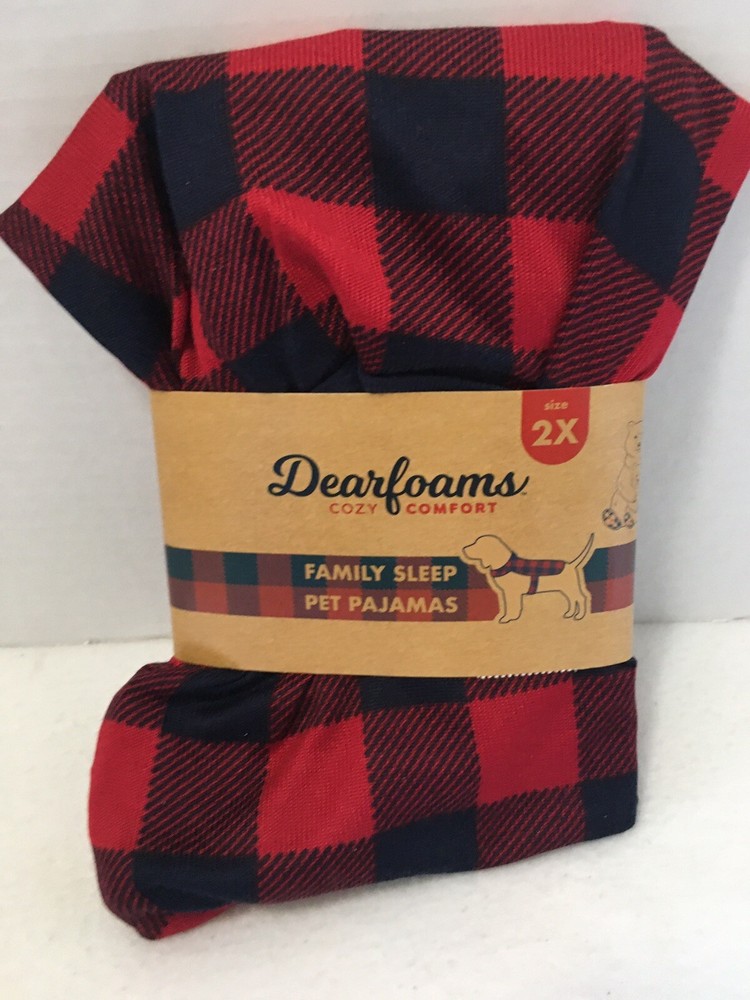 Dearfoams Cozy Comfort Pet Pajamas Red and Blue Buffalo Check Plaid Size 2X Fits a dog that measures 27"-31" from base of neck to base of tail, 95-105 Lbs.. Brand New In The Package My Home is Pet and...