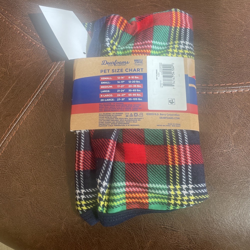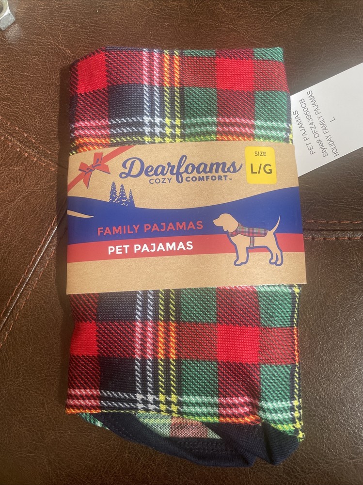 Give your furry friend the gift of comfort and style with these Dearfoams Pet Pajamas. Made with a soft poly/spandex material, these pajamas are not only cozy but also stylish with a classic plaid design in shades of red, green, blue, and yellow. Perfect for dogs size L, these pajamas are new with tags and ready to make your pet's holiday season extra special. Whether lounging at home or posing for holiday photos, these pajamas are perfect for any occasion.