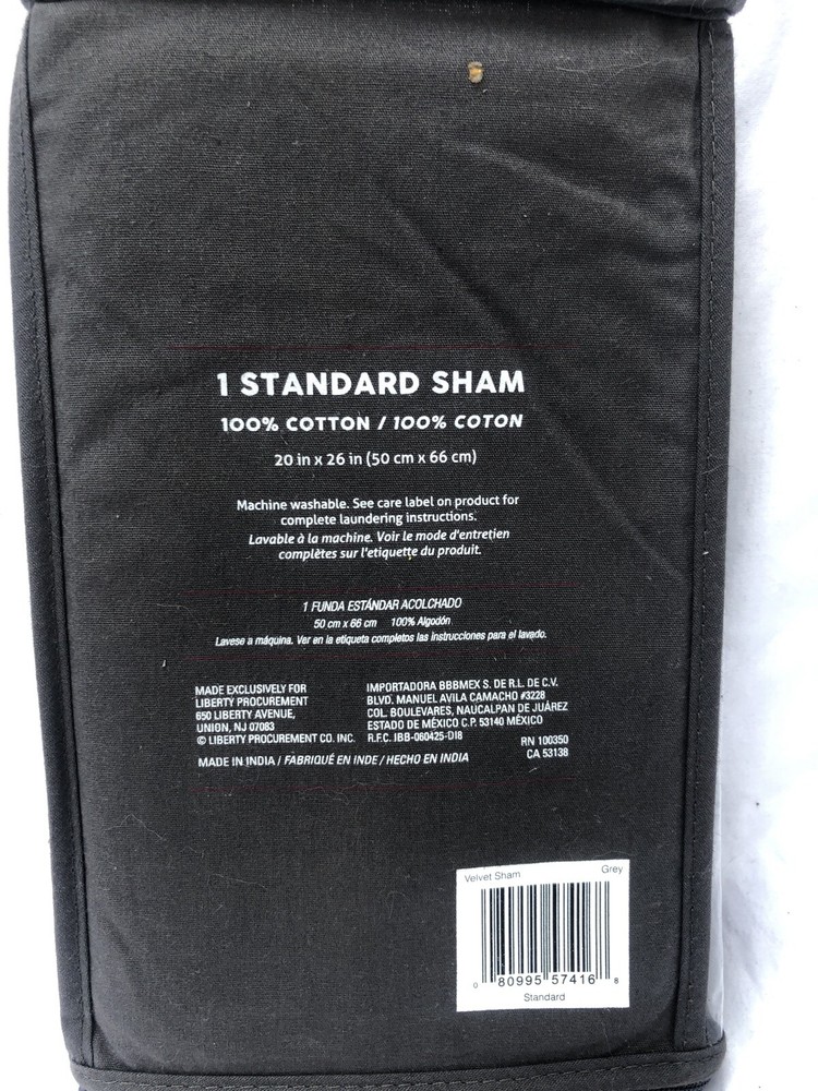 1 Standard Velvet Sham, 100% Cotton