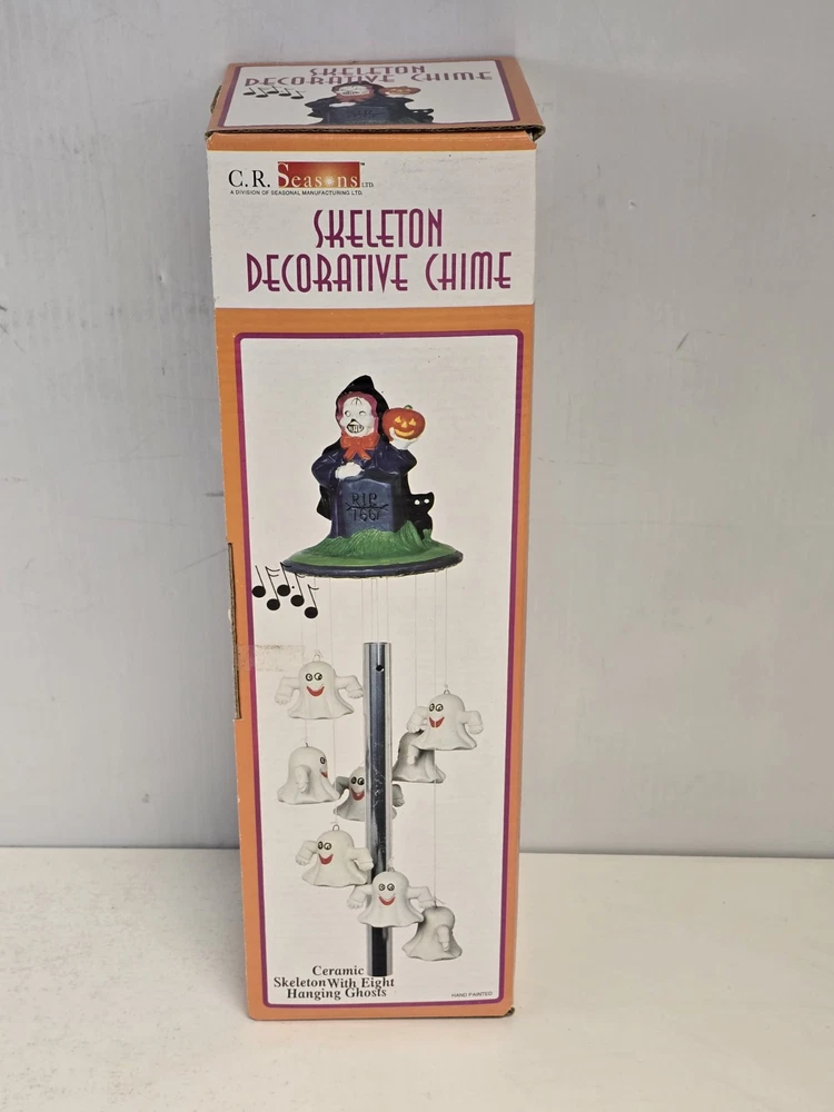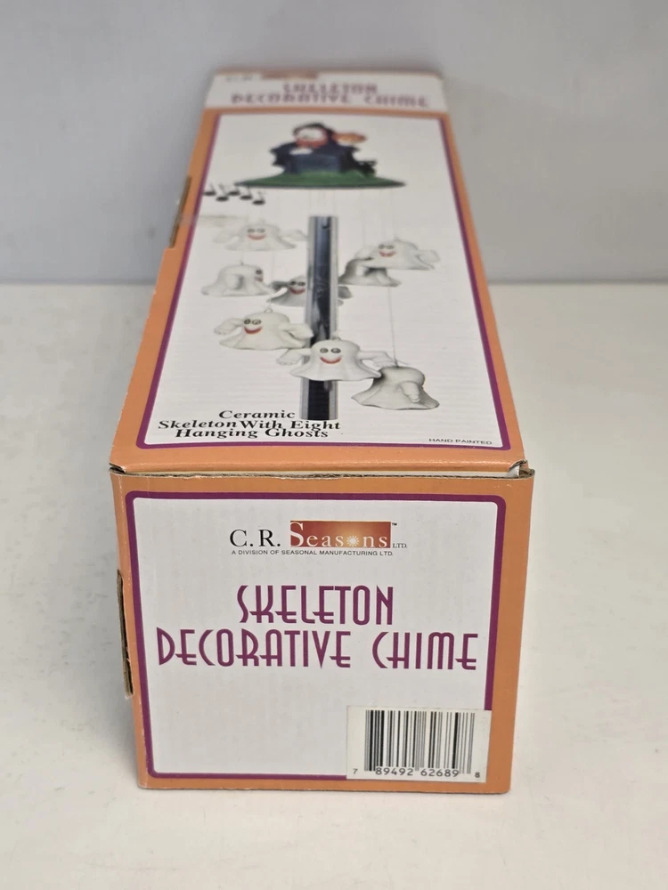 New Halloween Ceramic Wind Chime Skeleton With 8 Hanging Ghosts Vintage 90's NOS