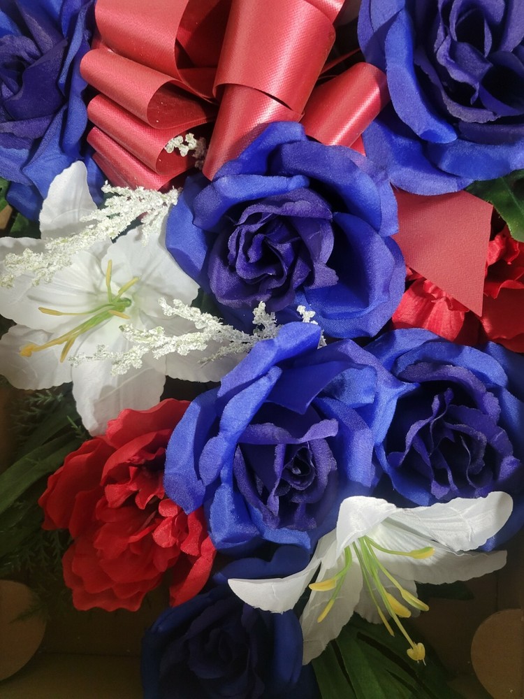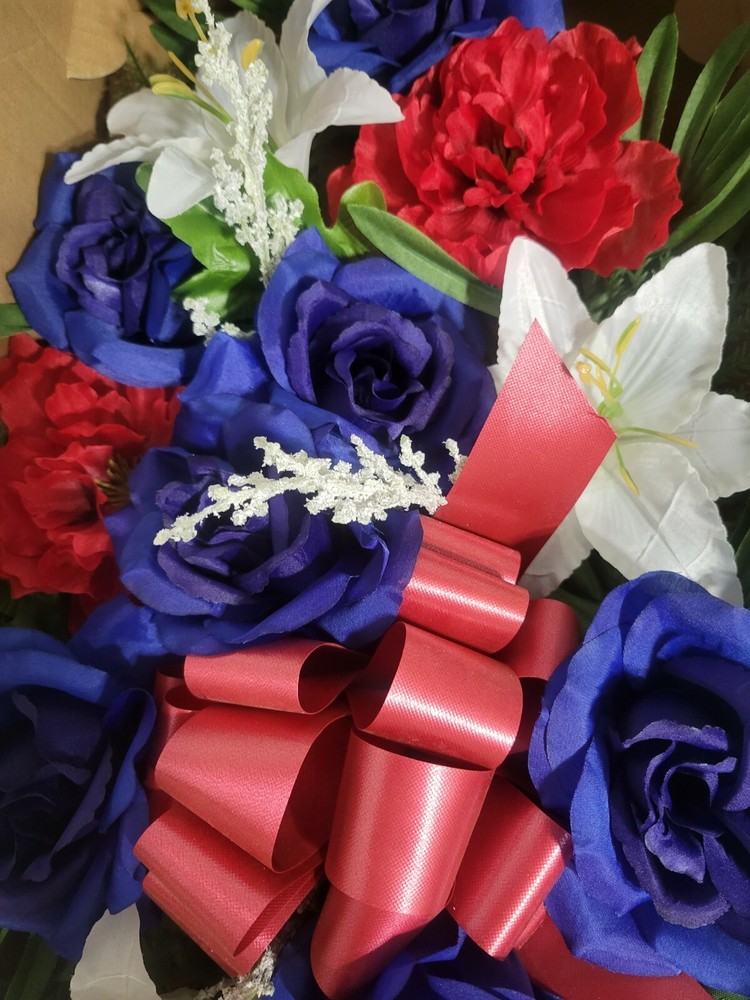 New Headstone Spray Floral 25" X 12"Headstone Spray Mixed Flowers & Burgundy....