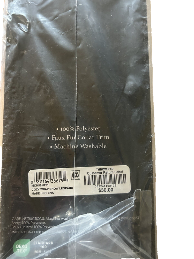 Beautiful new in box plush wrap~ snow leopard pattern smoke free home all sales are final Please check out my store where you will find a variety of items!