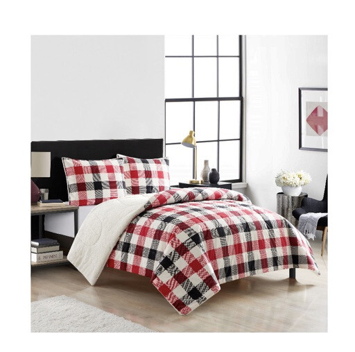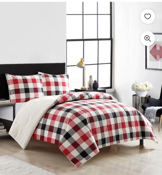 New Mainstay Reverse to Sherpa Comforters Set F/Q Red Plaid 3pieces....