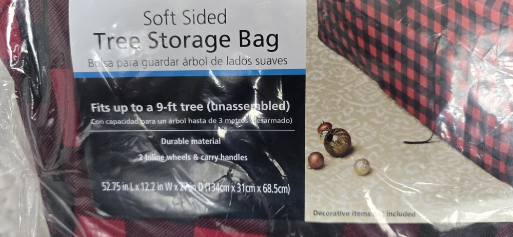 New Mainstays Soft Sided Tree Rolling Storage Buffalo plaid Bag . Fits up To a 9 ft tree with 2 inline wheels & carry handles. Smoke-free home Thanks for looking. Be sure to check out my other items listed in my eBay store. IH