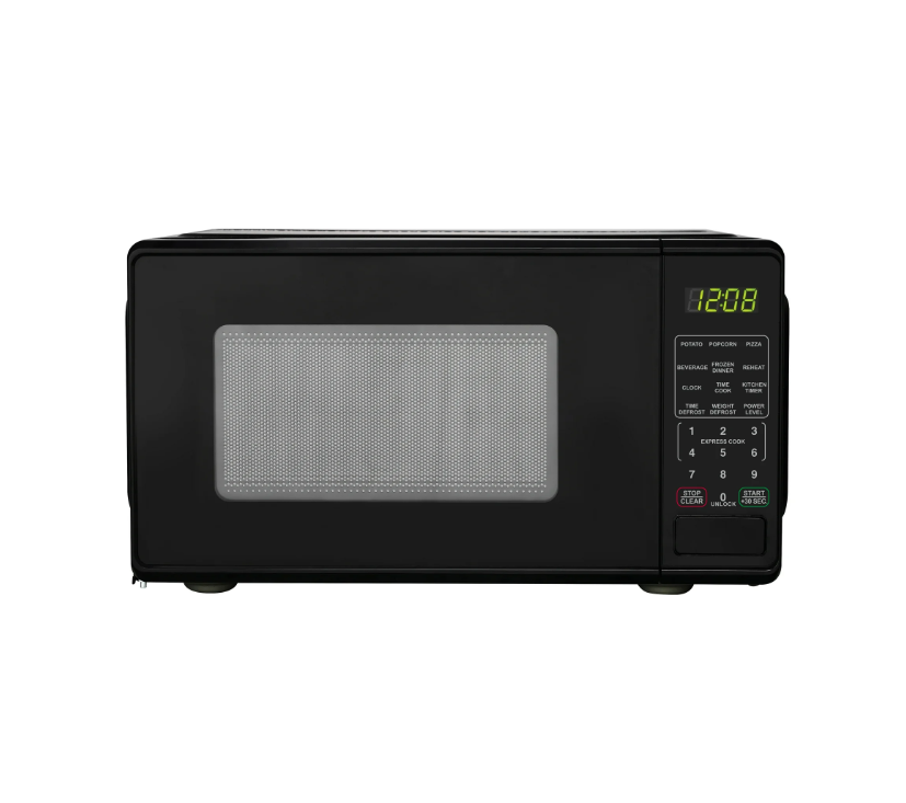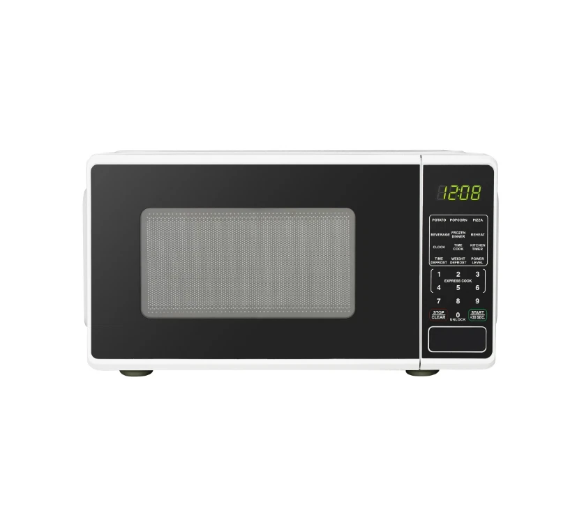 Mainstays 0.7 Cu ft 700-Watt Compact Countertop Microwave Oven is available in 3 colors including Black, Red or White. Each color is designed to complement your kitchen, dorm room, office or rec room. Features include LED display, kitchen timer & clock, 10 different power levels for cooking a variety of foods, weight & time defrost, 6 convenient quick-set menu buttons, 30 second one-touch option, child safety lockout and a push-button door. The Mainstays 0.7 Cu ft 700-Watt Compact Countertop Microwave Oven is the perfect addition to any home. Condition: New; Stock Number: MS8436127995 Mainstays 0.7 Cu ft Countertop Microwave Oven, White Capacity 0.7 Cu ft 700-Watt Power LED display Kitchen timer & clock 10 Power levels Weight & time defrost 6 Quick-set menu buttons 30 Second one-touch option Child-safe lockout Push-button door opening Condition: New