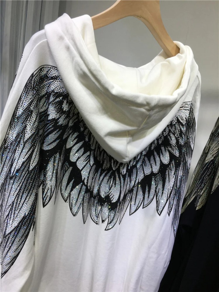 Absolutely love this hoodie! The rhinestone wings add such a luxurious vibe—perfect for standing out while staying comfy. It's soft, warm, and fits true to size (got the 2XL, fits perfectly). The sparkle is stunning but doesn’t feel tacky. Great for casual outings or adding glam to streetwear. Definitely worth it!
