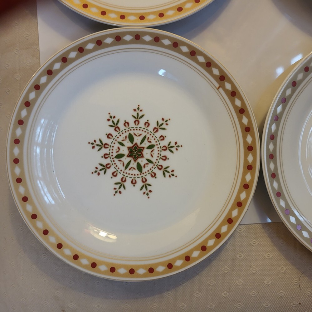 New without Box...I bought them but never used them NWOB Pier 1 Imports Retro Folk Print Set of 4 Dessert Plates China Retro looking Folk print Set of 4 plates China 7.5" round" Dishwasher, microwave ...